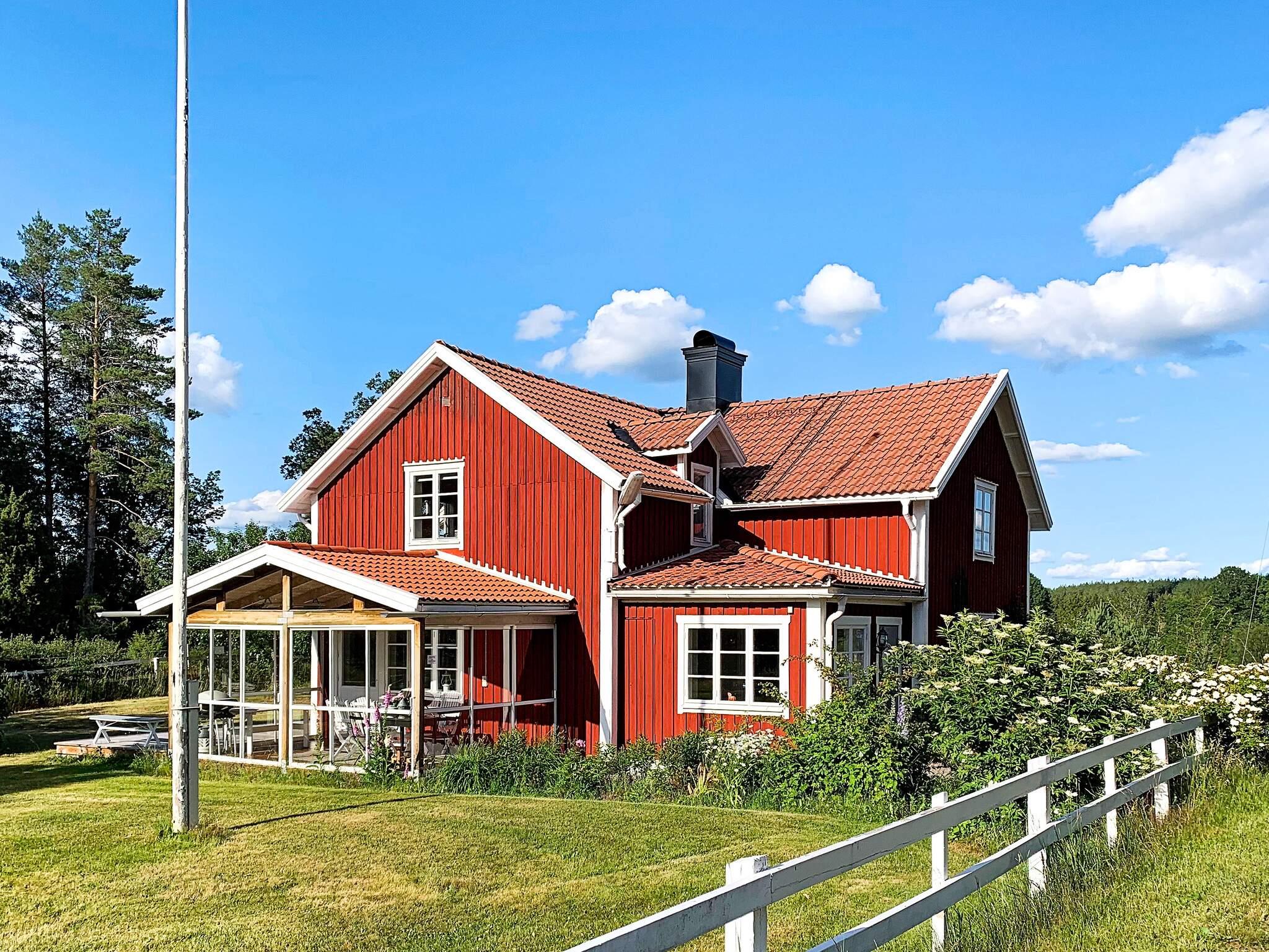 Till huset hör också carport för bilparkering. Huset ligger relativt högt med härlig utsikt över öppet landskap och ca km till närmsta granne. Storskogen inpå knuten med fina bär- och svampmarker och rikt djurliv (älg, rådjur, räv osv). Till den kommunala badplatsen är det ca 3 km och här finns sandstrand, brygga, badtrappa och det är långgrunt. Ut till kusten är det ca 22 km om man vill bada i havet. Genuin smålandsnatur med många sjöar, små byvägar, stora skogar och trevliga byar. Till Västervik med shoppingcenter och pittoresk stadskärna är det ca 35 km. Väl värt ett besök. För de lite yngre hägrar säkert ett besök på Astrid Lindgrens Värld i Vimmerby och dit är det också ca 35 km. Välkommen till ett vackert hus i vacker natur.