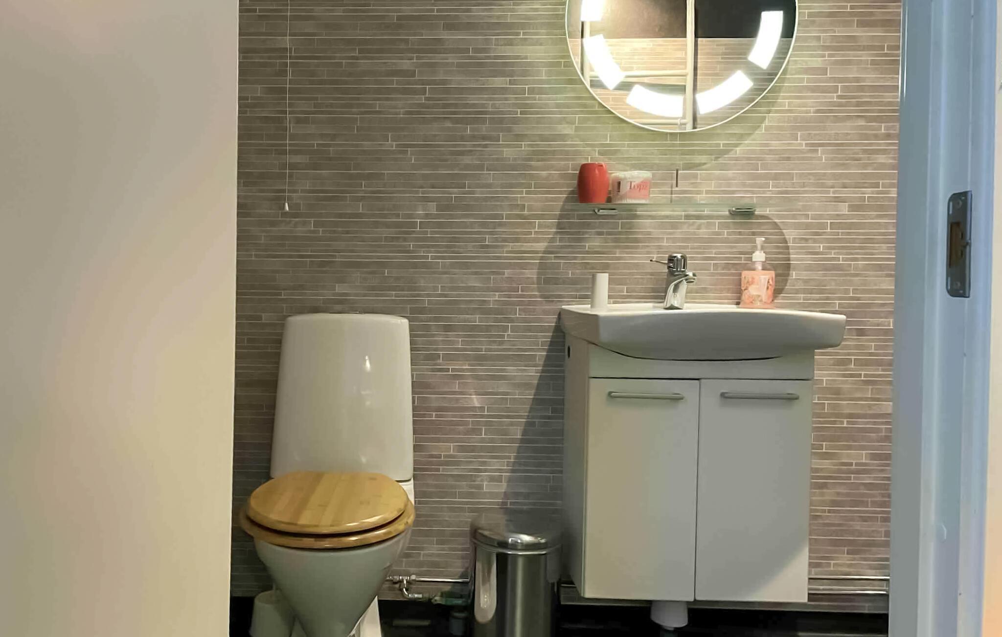 Badeværelse (nr. 1) - WC. Varmt og koldt vand. Bruser