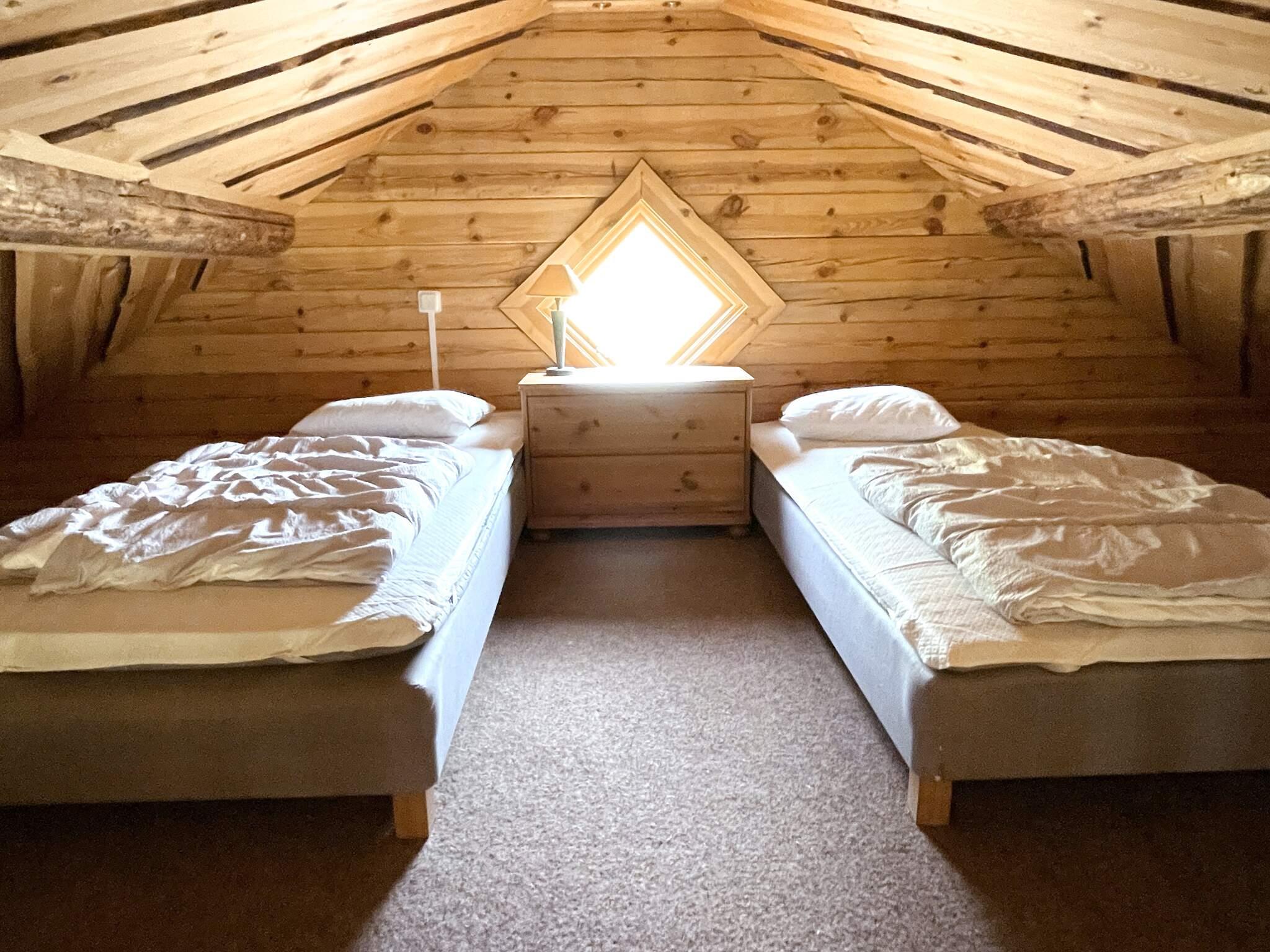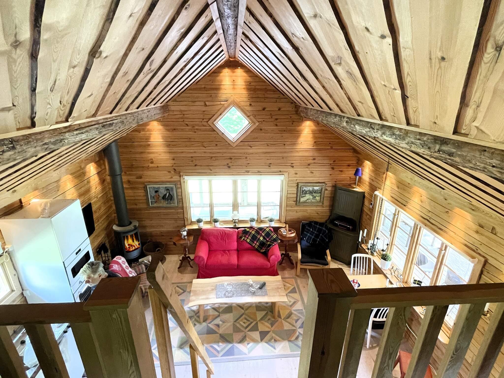 Socialt vardagsrum med öppen planlösning mot köket. Köket är utrustat med kyl, frys, ugn, micro och spis. Matbord för fyra personer, soffa och kamin som självklart får nyttjas av er boende. Sovrum med dubbelsäng (90+90) som går att dela på om ni önskar. Via den branta trappan når ni ett mysigt sovloft med två enkelsängar (90+90). Fräscht badrum med WC, dusch och tvättställ. I källaren finns en tvättmaskin.