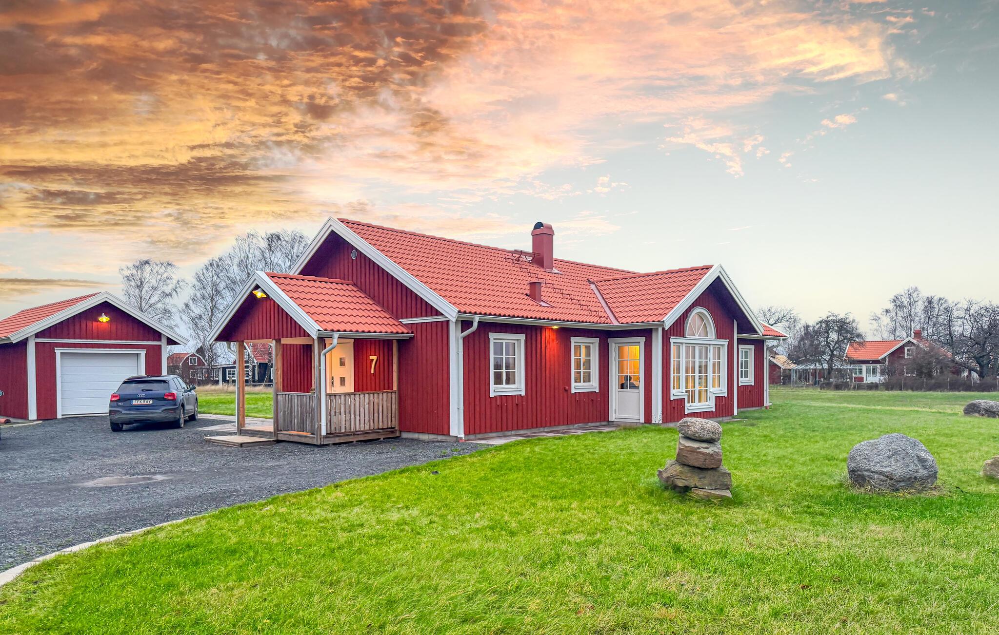 Langt fra den travle hverdag byder dette rummelige og komfortable feriehus på den dejlige ø Visingsö jer velkommen med en harmonisk atmosfære. Det moderne, smagfulde interiør tilbyder en hyggelig atmosfære, som I kan nyde under fælles måltider, rolige læsestunder og afslappende filmaftener. Planlæg jeres aktiviteter i ro og mag og glæd jer til sjove aftener med spil efter en lang dag i den forfriskende havluft.