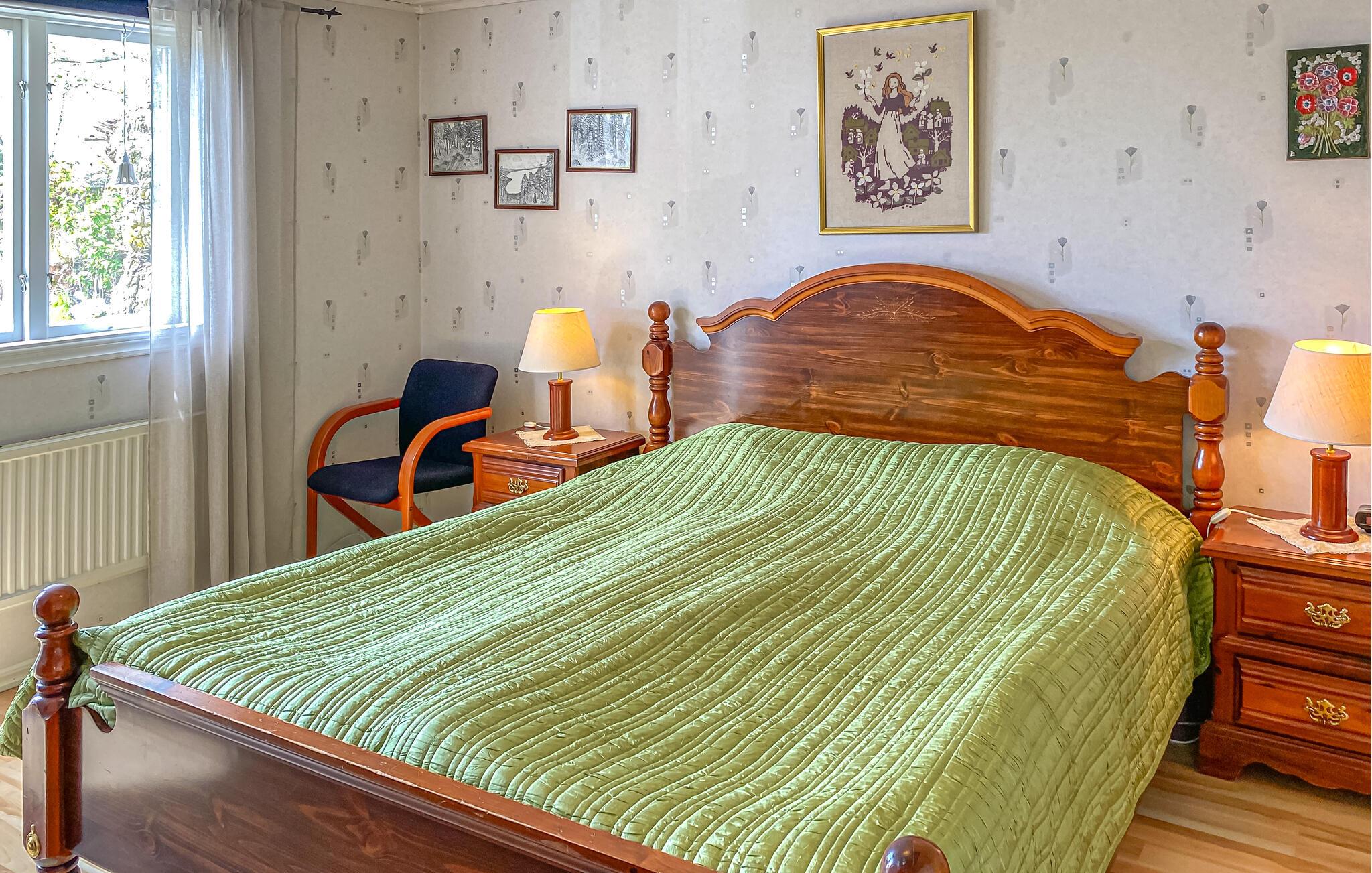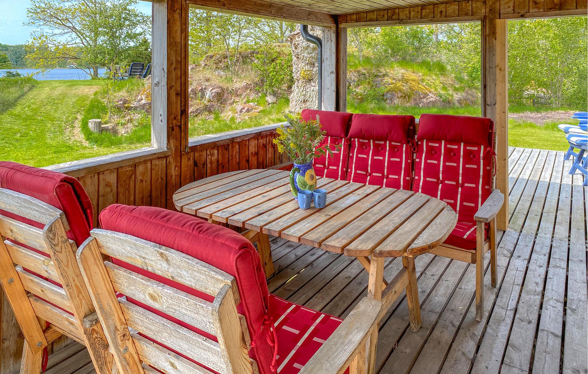 Oplev en ferie tæt på naturen med søudsigt og egen båd i dette traditionelle feriehus. Nyd afslappende dage ved bredden af Noen-søen i dette traditionelle feriehus. Den rolige beliggenhed, den rummelige grund og adgangen til egen robåd skaber de ideelle betingelser for en afslappende ferie. Glæd jer til den hjemlige atmosfære med lyse møbler, et hyggeligt sofahjørne og en behagelig lænestol ved vinduet. Slap af med en bog eller se en film sammen. Den varmende pejs skaber en hyggelig atmosfære på køligere dage. I kan nemt tilberede jeres egne måltider i det praktisk indrettede køkken. Brug den overdækkede veranda med et træbord til udendørs spisning, beskyttet mod vind og vejr. Slap af på liggestolene eller nyd naturen med en kop kaffe i haven. Her inviterer et rustikt siddeområde til picnic og snak med udsigt over søen. Tag af sted med en robåd på en fredelig tur over den glitrende sø. Besøg charmerende Gränna med dens berømte slikstænger, caféer og færgen til Visingsö. Tag på vandretur eller cykeltur i de varierede omgivelser, eller slap blot af.