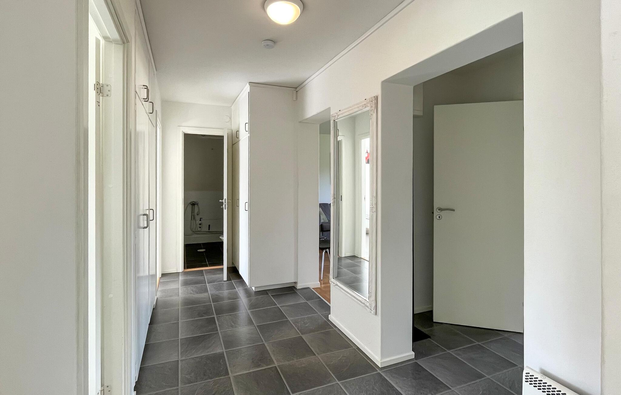 Oplev en bolig, der er det ideelle udgangspunkt for en række forskellige aktiviteter. Træd indenfor og sæt jer godt til rette i den store hjørnesofa i den lyse stue. Se tv sammen, læs en bog eller slap af med en snak i en hjemlig atmosfære. Brug det moderne køkken med spisebord til at tilberede jeres måltider og nyde dem med venner.