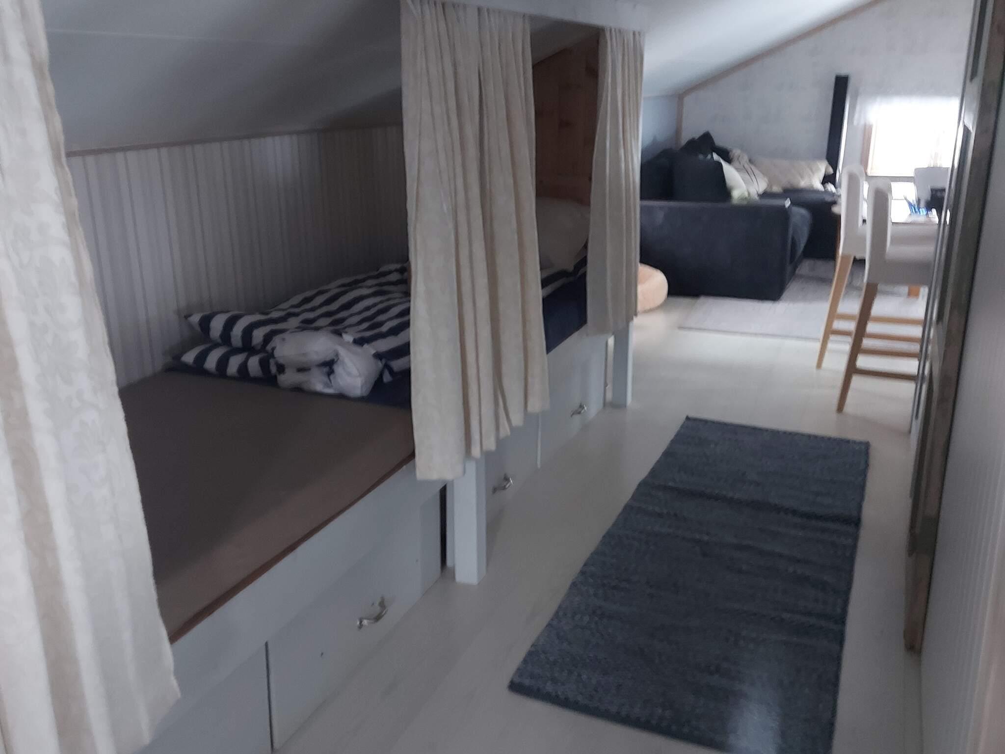 Lägenheten är nyrenoverad och rymmer ett vardagsrum och kök med öppen planlösning. Köket är komplett inrett med två kokplattor, ugn, micro och kyl/frys. I vardagsrumsdelen finns en soffgrupp som också kan göras om till enkel eller dubbelsäng. Mellan vardagsrum och sovrum i hallen finns två inbyggda sängar som är 80 cm breda och 180 cm långa. I sovrummet finns det en dubbelsäng, samt en enkelsäng. Badrummet innehåller dusch och toalett.