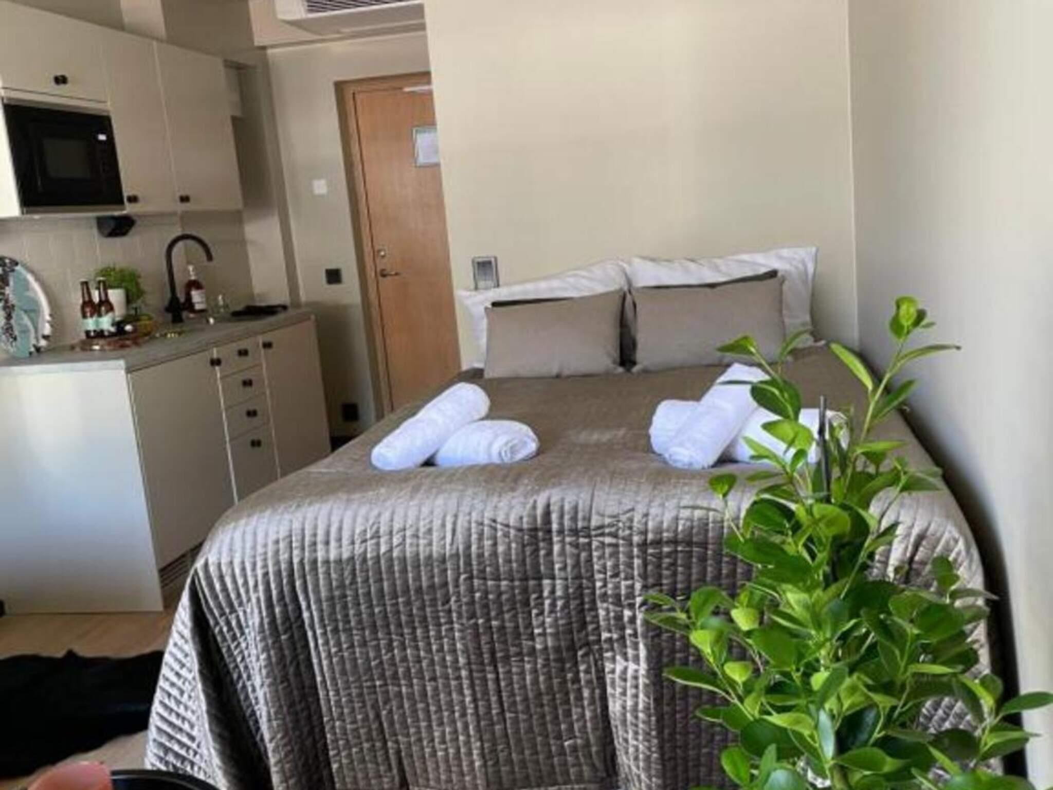 Väl planerad studio med dubbelsäng, 140 cm bred, och bäddbar soffa, 150 cm bred med ytterligare plats för två personer. Här finns pentry med kyl, mikro och induktionshäll. Design och inredning i ljus skandinavisk stil med möblerad uteplats mot grönområde. Wifi ingår och TV(streaming med fria kanaler eller användare du ditt egna abonnemang)finns i rummet. Eget, rymligt badrum med dusch och toalett. Husdjur är välkommet mot extra kostnad 295:-/ vistelse.