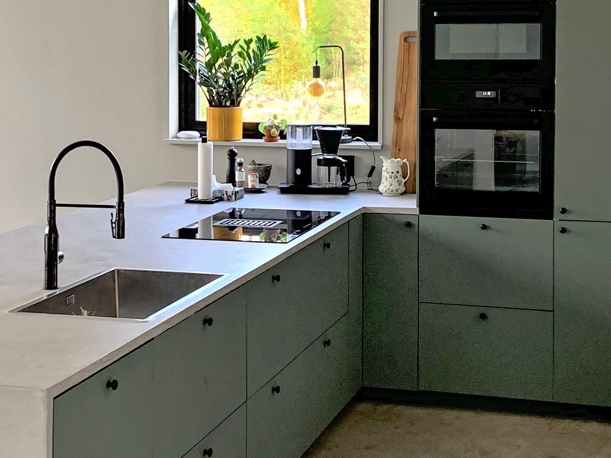 Køkkenafd.: el-komfur, ovn, køle-frys, fryser 60 - 99 l, mikroovn, kaffemaskine, opvaskemask., vand fra brønd