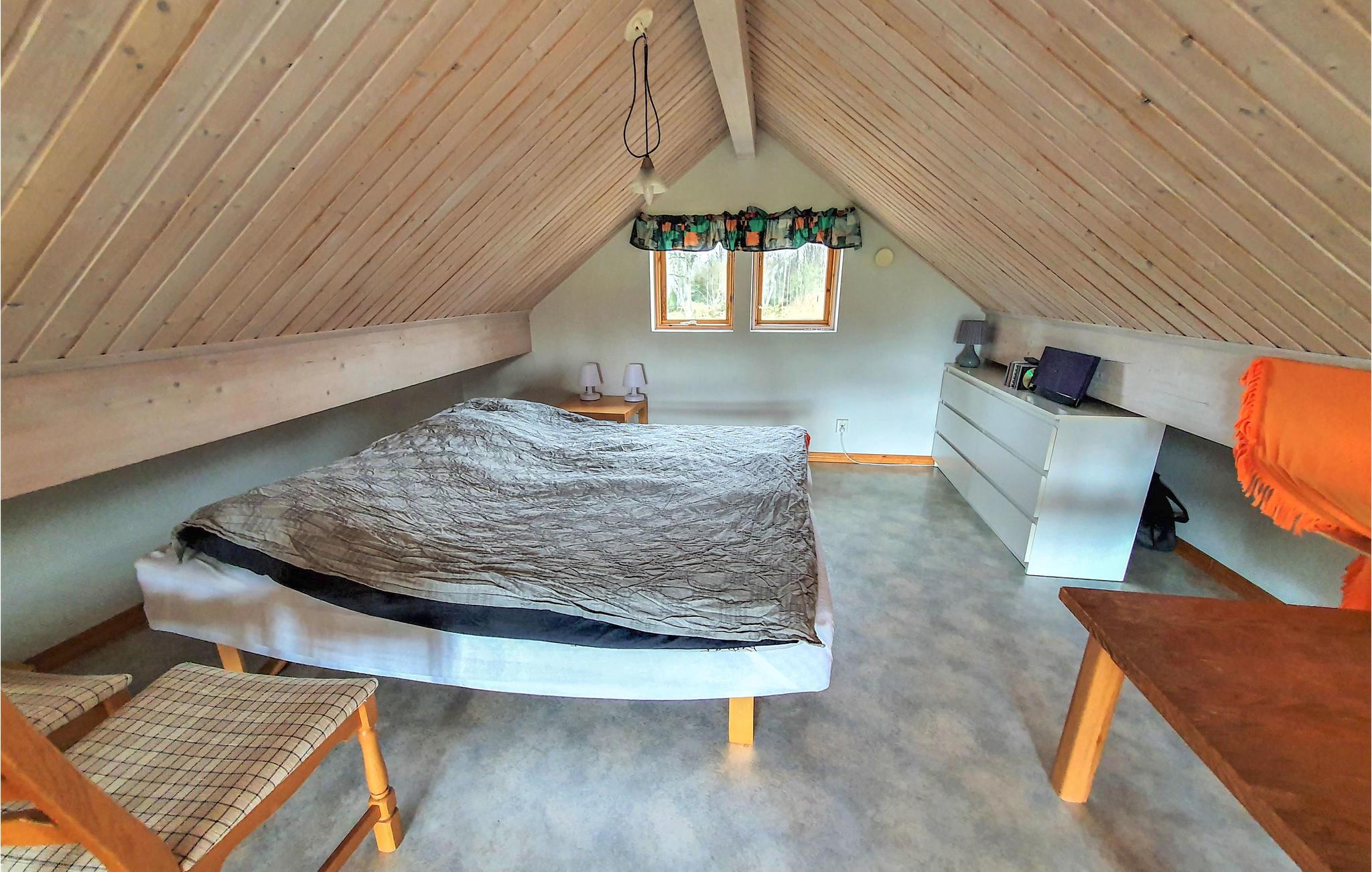 Her bor I virkelig midt i naturen, og efter kun en kort gåtur kommer I ned til Bolmen-søen. I huset finder I et hyggeligt soveværelse og et stort soveværelse med 2 dobbeltsenge i hvert. Huset er traditionelt bygget med masser af træ, og taget er stilfuldt åbent til kip. Hele stueetagen er udstyret med gulvvarme og fliser, og køkkenalrummet er åbent og danner det naturlige samlingspunkt for jeres ferie.