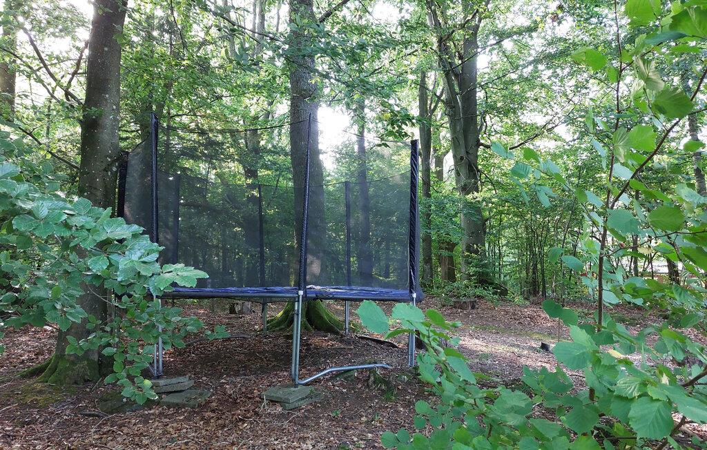 Huset ligger på en stor og dejlig naturgrund, hvor der er dejlige faciliteter for hele familien. Børnene kan give den gas på trampolinen, mens I daser på den store terrasse med gode havemøbler og grill. Til huset hører også en smuk og overdækket indre gårdhave, som indbyder til lange og hyggelige aftener i den skønne aftensol.