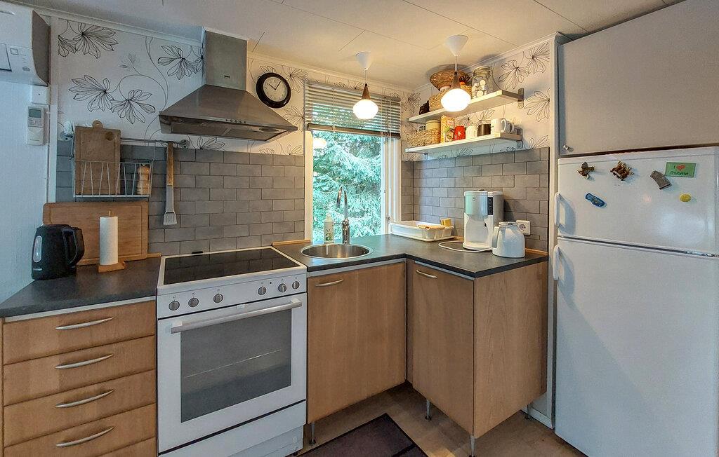 I skovens dybe, stille og idylliske ro ligger dette velholdte og hyggelige træhus, som emmer af klassisk sommerhuscharme og danner rammen om en fantastisk ferie i Skåne. Indretningen fremstår varm og hjemlig, og særligt hyggeligt bliver det, når man fyrer op i brændeovnen og gør sig det behageligt med en god bog eller et fornøjeligt bræt- eller kortspil.