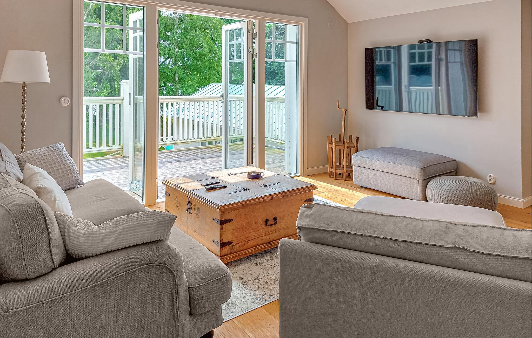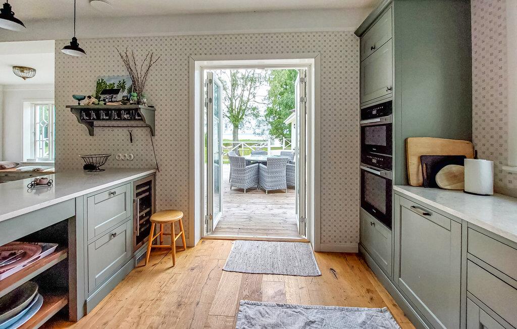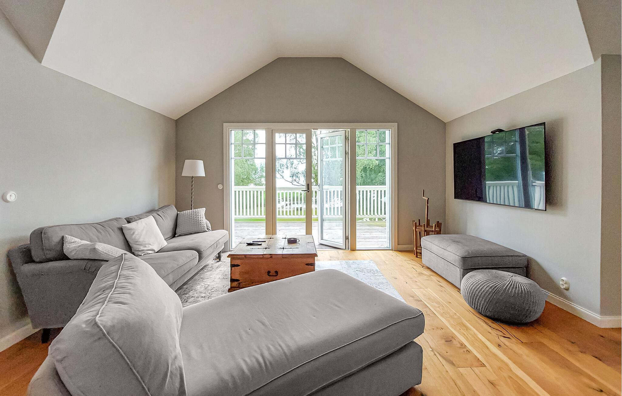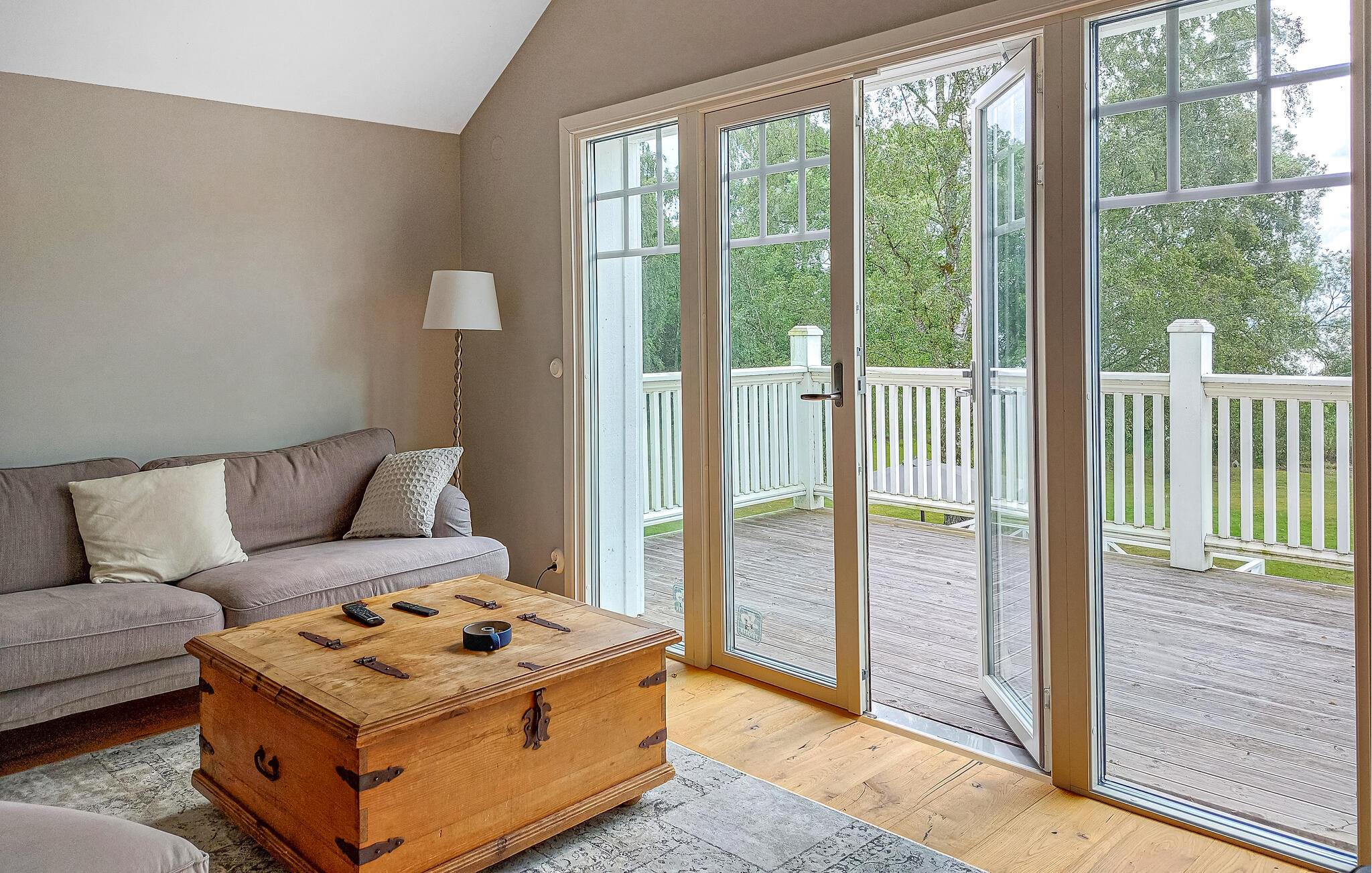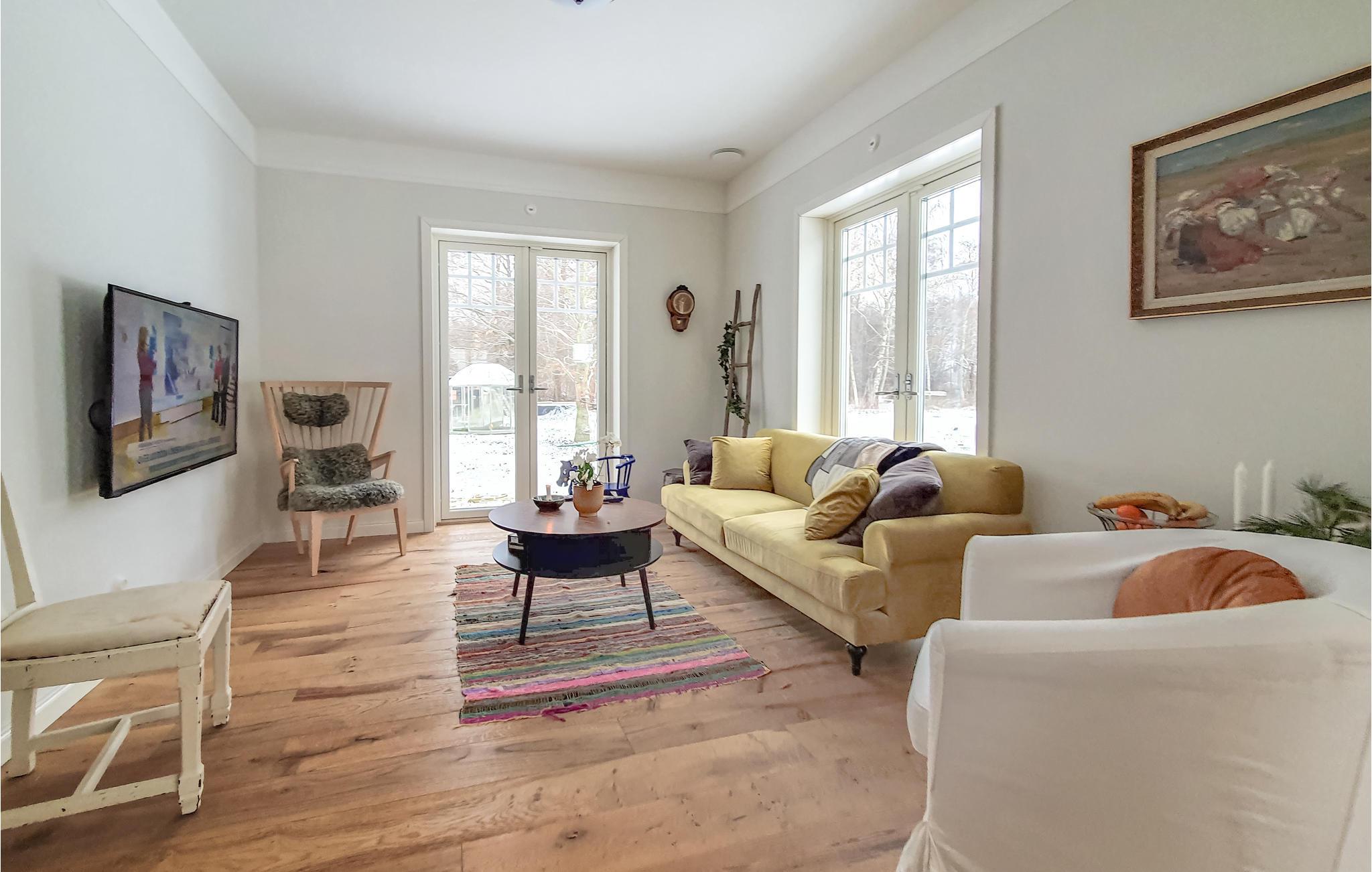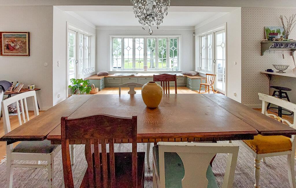 Det idyllisk beliggende hus i karakteristisk svensk stil byder jer velkommen ved søen Östra Ringsjön og tilbyder jer de bedste betingelser for et hyggeligt afbræk med familie eller venner. Med sine lyse værelser og hjemlig indretning er det det ideelle sted at slappe af. Flere hyggelige siddepladser med bløde sofaer og komfortable lænestole sikrer, at I kan nyde søpanoramaet fuldt ud. Føl jer godt tilpas i de rummelige fællesområder og nyd tiden sammen. Den store ejendom byder på masser af plads til at lege og slappe af.