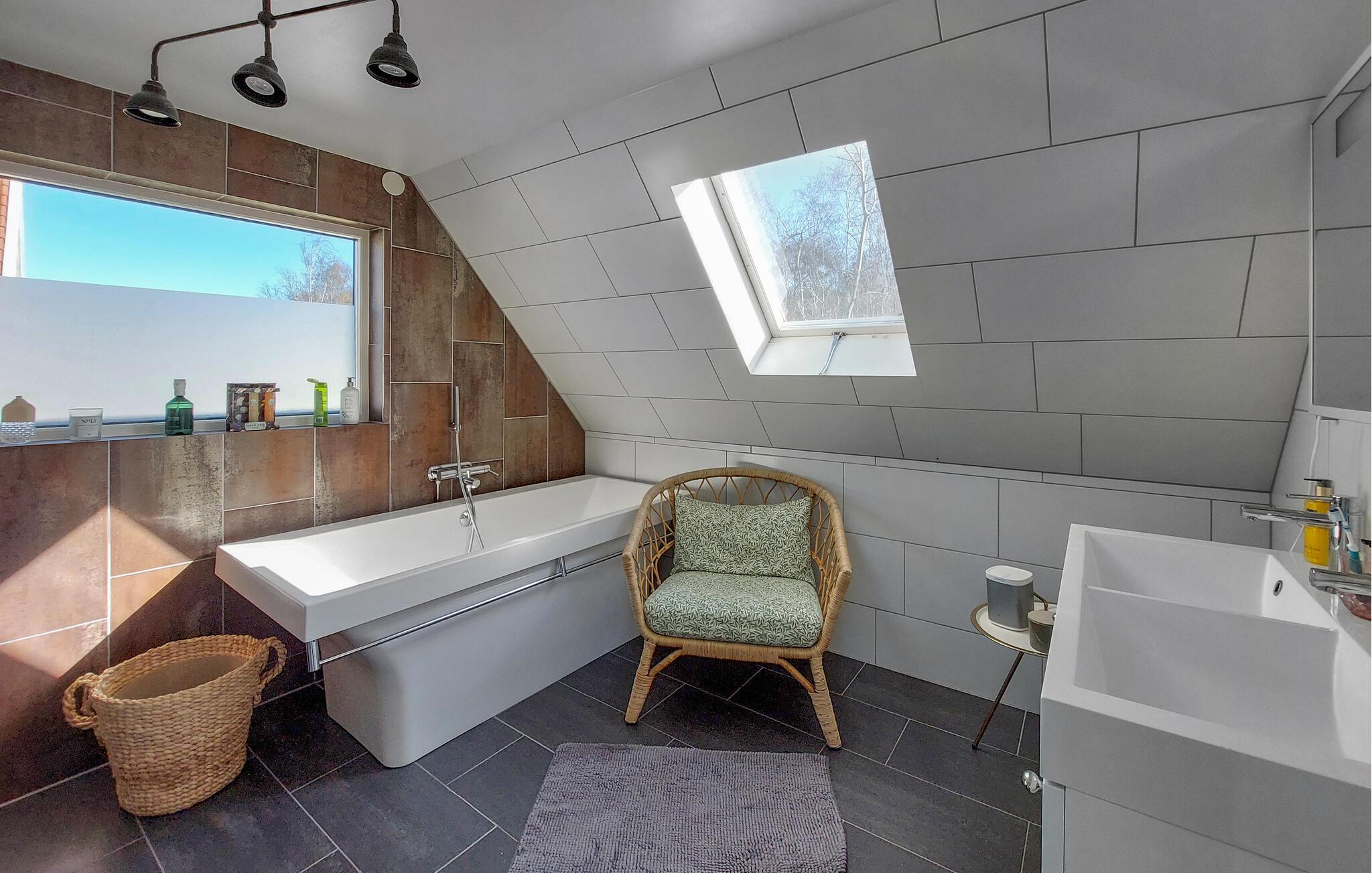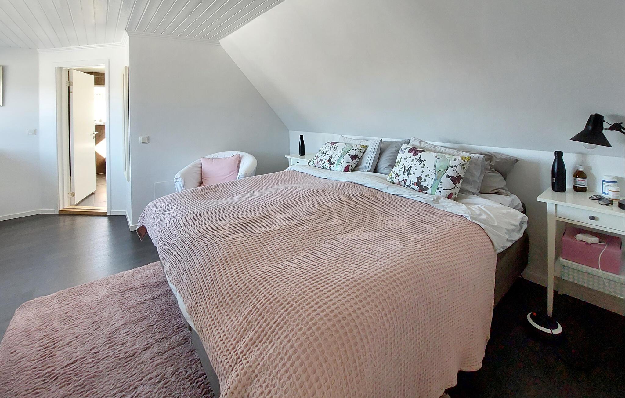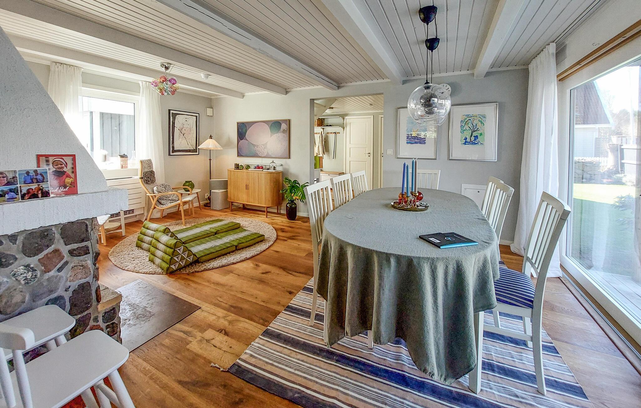 Dette lyse og rummelige feriehus forkæler jer med smagfuldt møbleret og af høj kvalitet i en fremragende beliggenhed. Glæd jer til at lave mad sammen i det rummelige køkken og nyde hyggelige måltider i den komfortable spiseplads. Lyt til knitren fra pejsen, mens I slapper af med en læsning, stream en god serier eller hyg jer med familien under en hyggelig spilleaften.