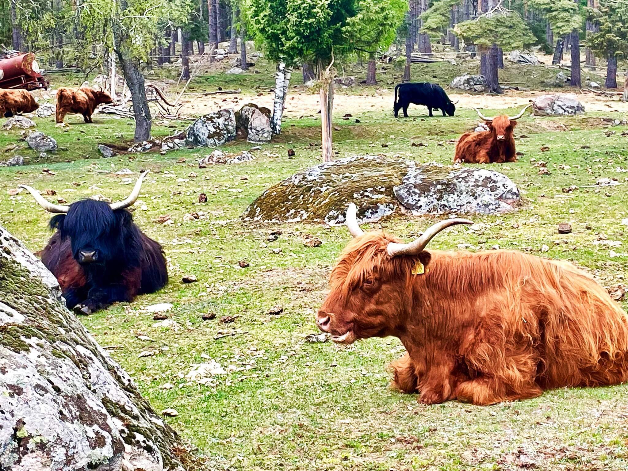 På vägen till huset kan ni njuta av vyn av vackra Highland Cattle kor som betar i hagarna.