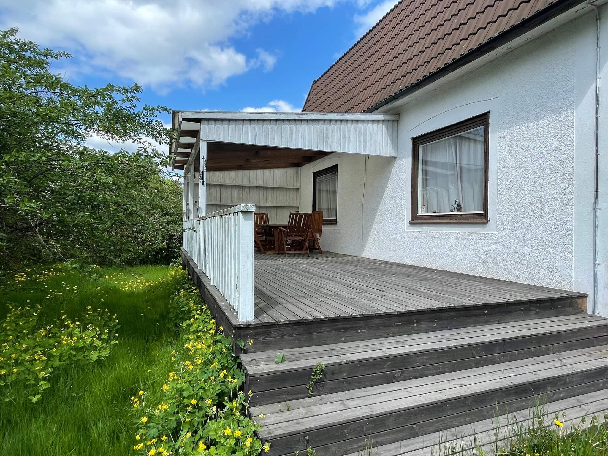 Trevligt hus i Ruda där ni har en stor altan med utemöbler och en trädgård, där det finns gott om fruktträd som ni gärna får njuta av under er vistelse om årstiden tillåter. Det finns plommon, äpple, körsbär och svarta och röda vinbär. Låt er väl smaka.