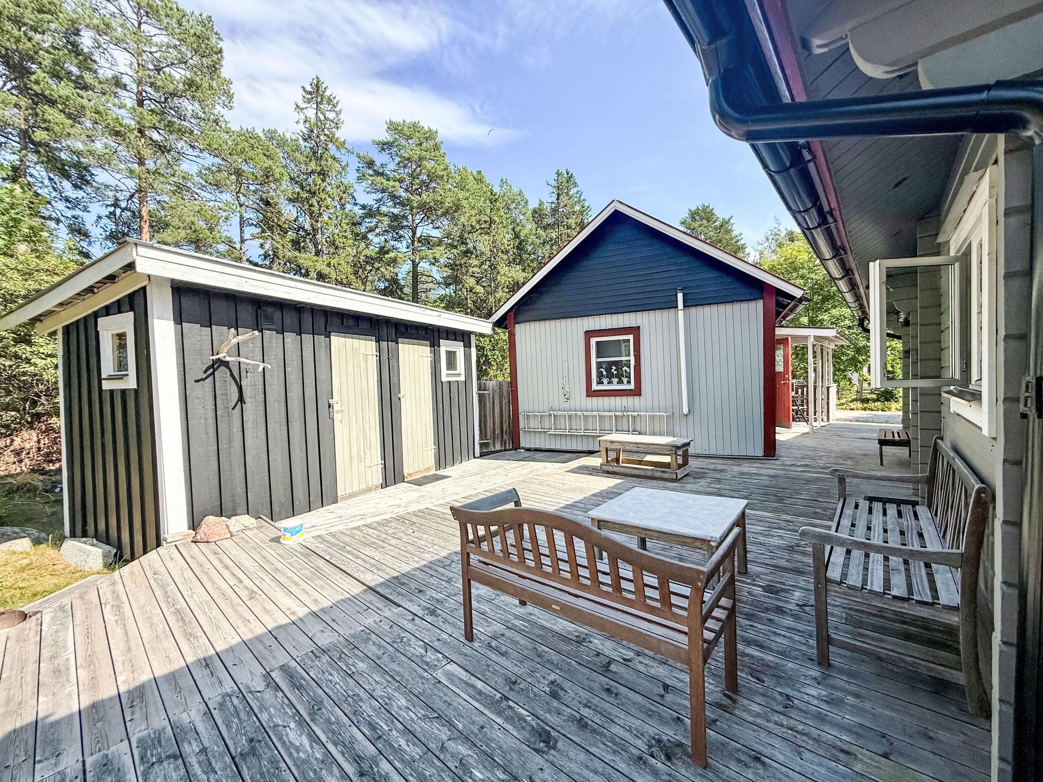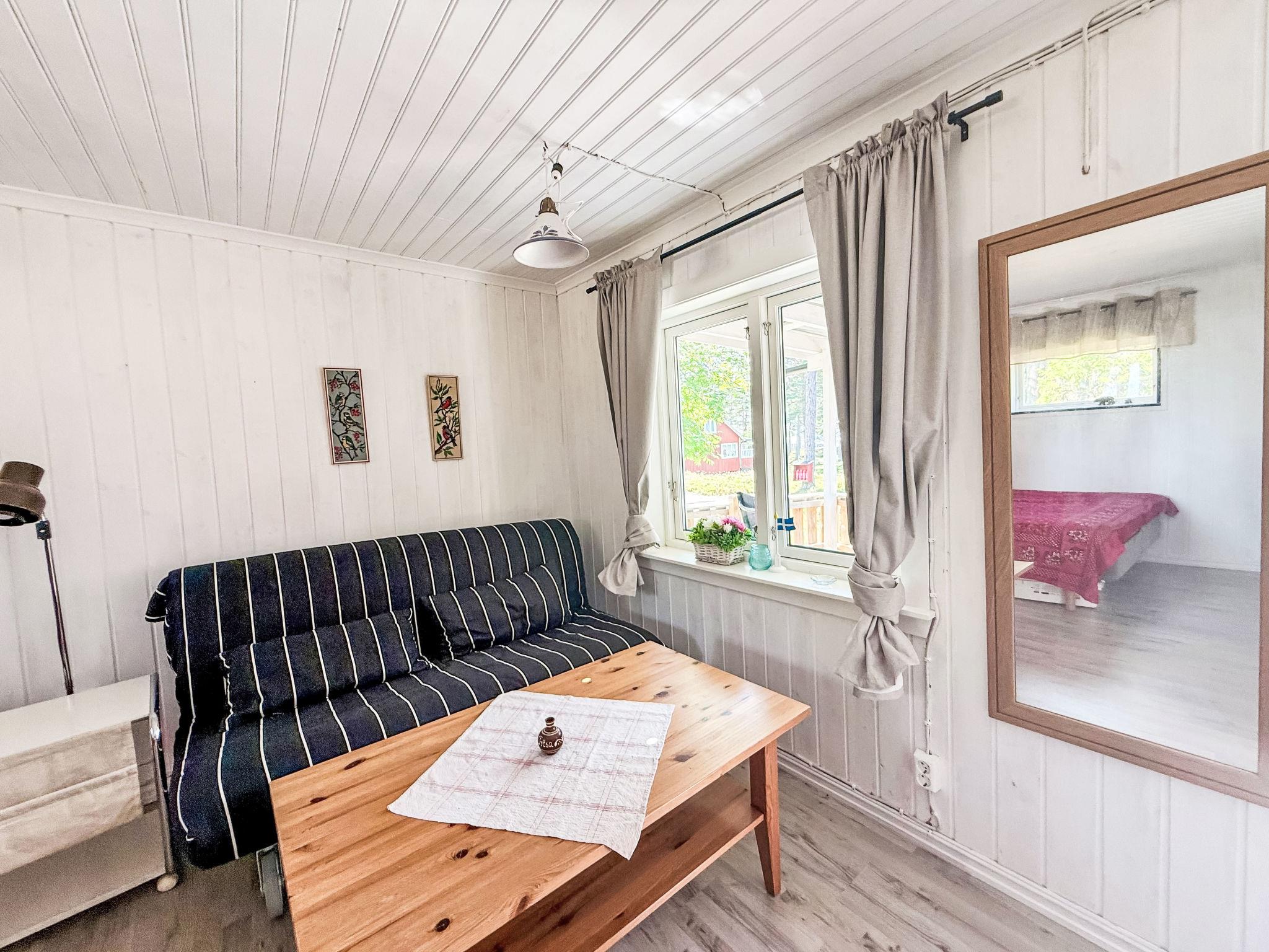"Lugnet", 1-room house 40 m2. Practical and comfortable furnishings: open living/dining room with 1 double sofabed (160 cm, length 200 cm), 1 double bed (2 x 90 cm, length 200 cm). Kitchen-/living room (2 hot plates, toaster, kettle, microwave, electric coffee machine). Shower, simple dry toilet. Electric heating. Parquet floors. Small terrace. Sitting area. Very beautiful distant view of the sea and the forest. Please note: non-smoking house. Smoke alarm, fire extinguisher.