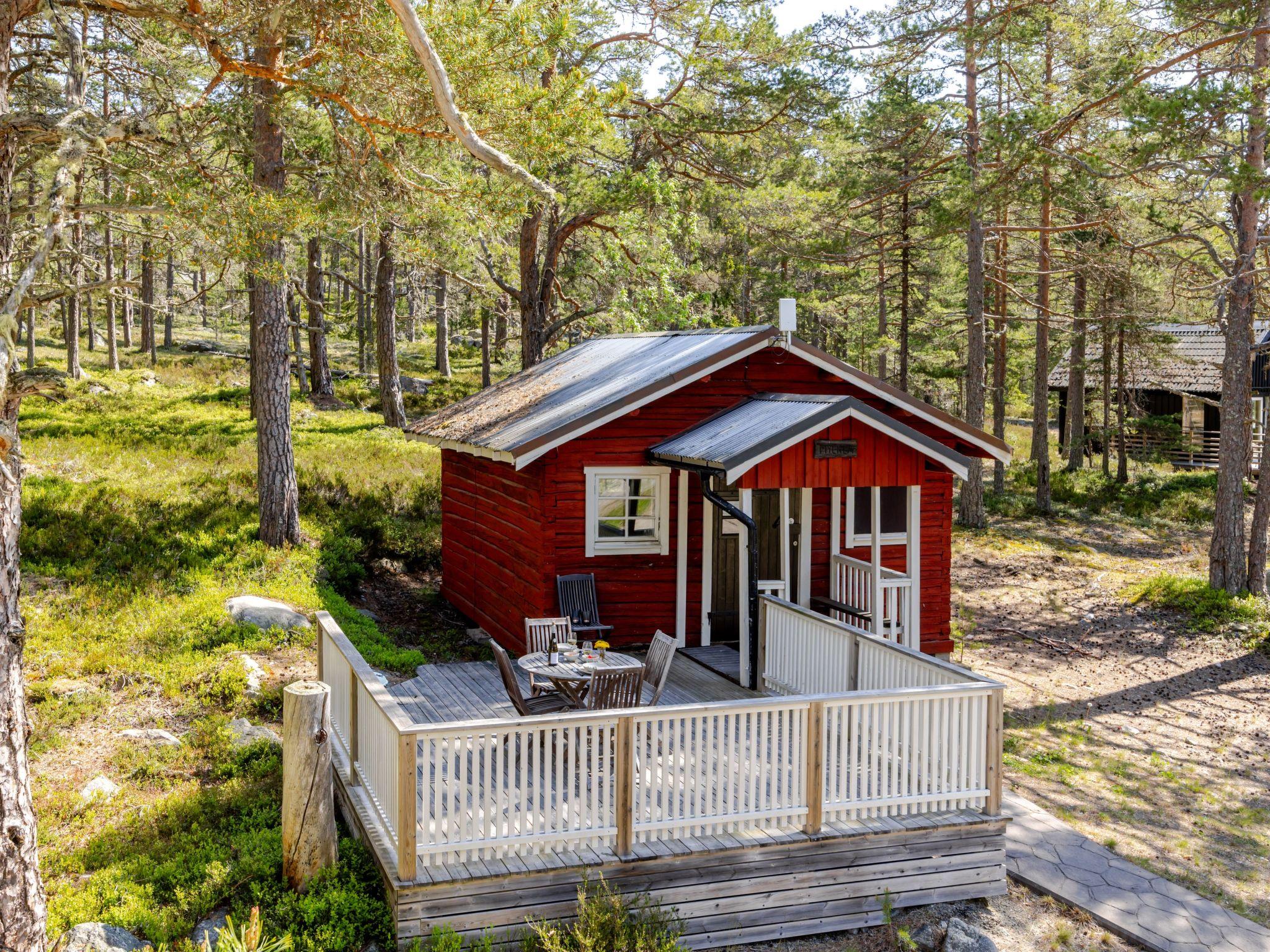 "Himla", 2-room house 35 m2. Object suitable for 2 adults + 2 children. Comfortable and cosy furnishings: living/dining room with 1 sofabed (160 cm, length 200 cm), TV. Exit to the terrace. Small, open kitchen (oven, 4 ceramic glass hob hotplates, toaster, kettle, microwave, electric coffee machine). Shower/WC. Electric heating. Upper floor: (ladder), 1 open children's room with 1 double bed (160 cm, length 200 cm). Carpet. Comfortable furnishings in the country house style. Large terrace 35 m2. Terrace furniture, barbecue. Beautiful view of the forest. Maximum 1 pet/ dog allowed.