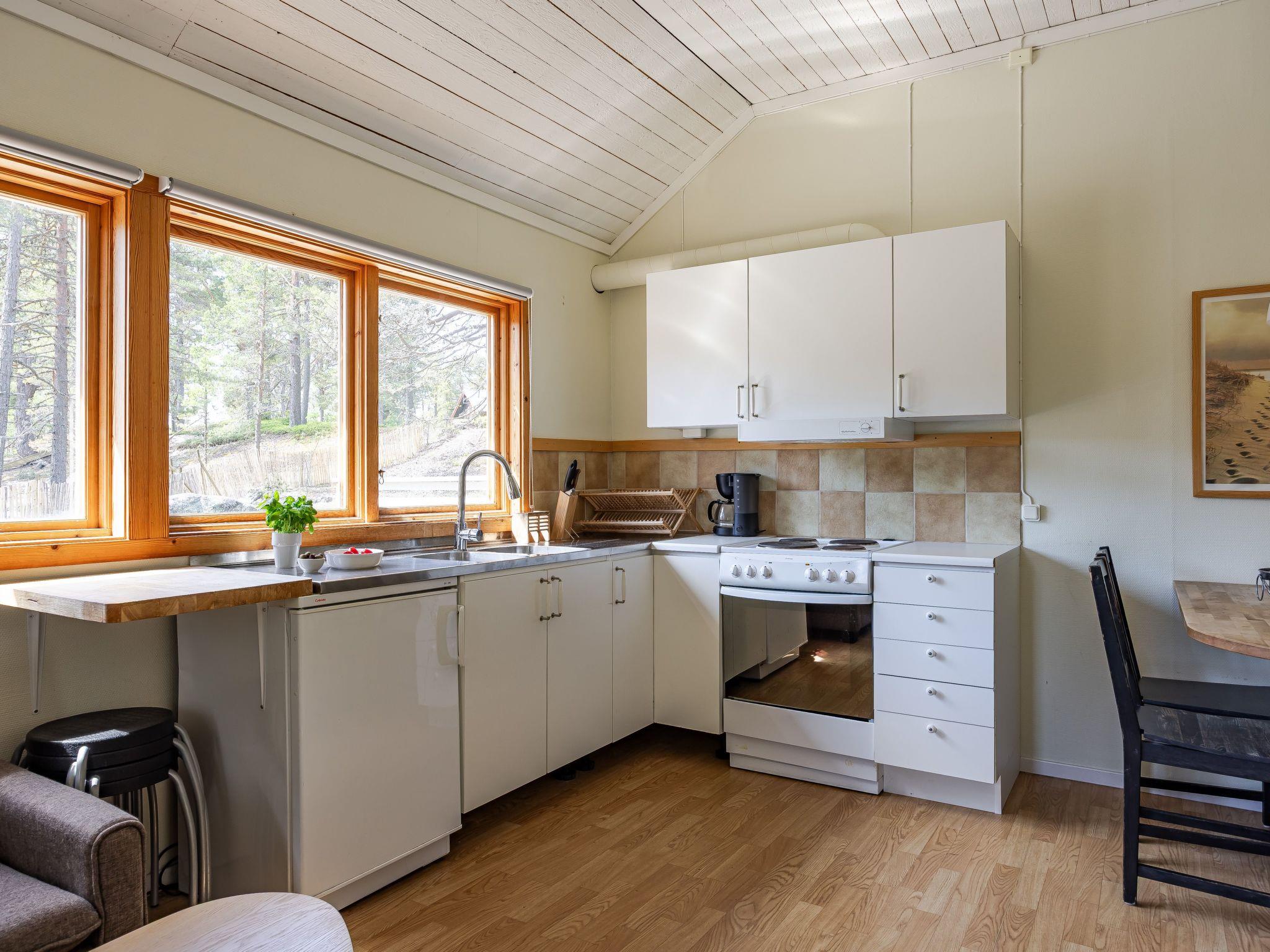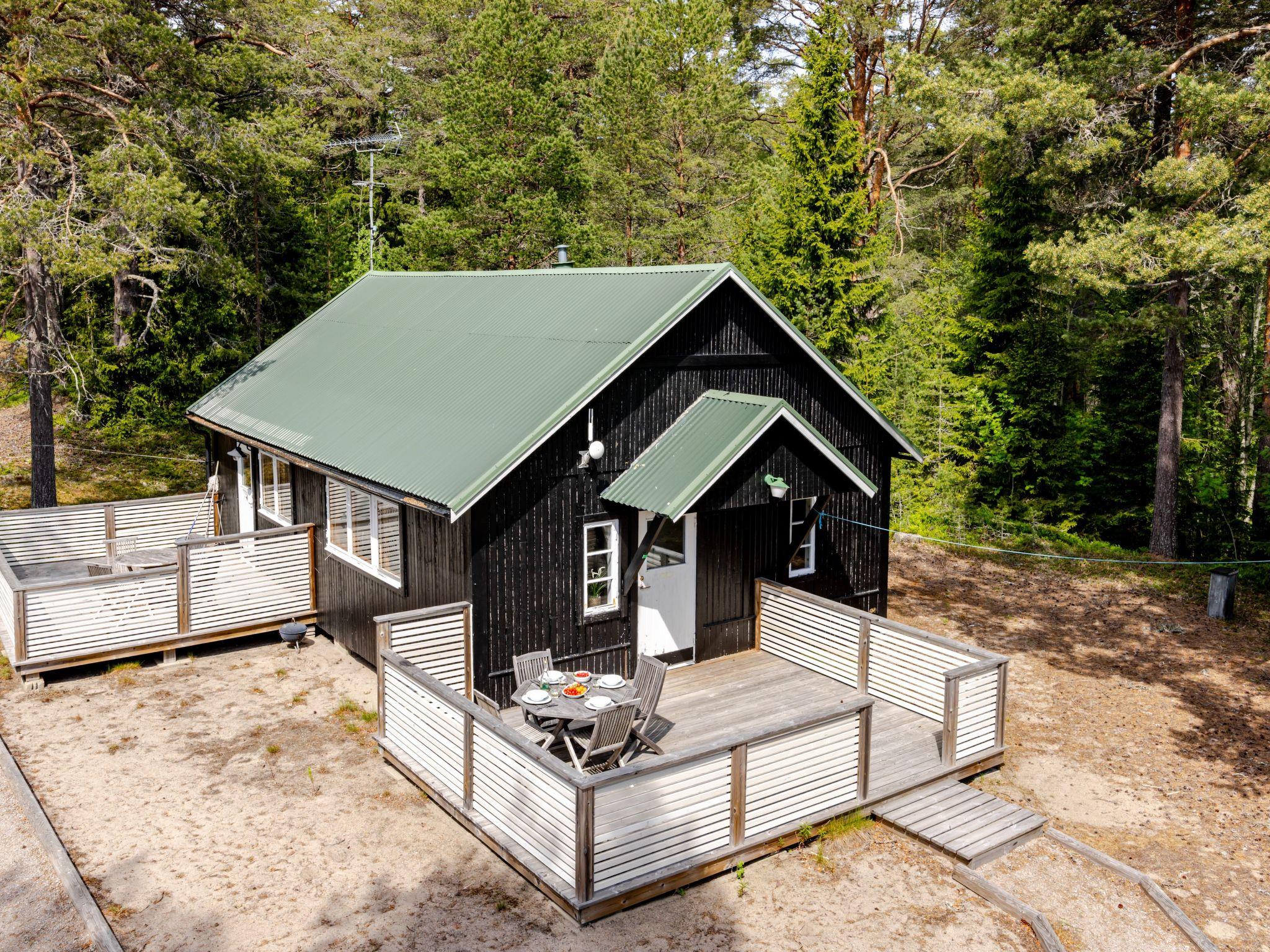 "Hölick Tallen 2", 2-room house 35 m2. Object suitable for 2 adults + 2 children. Comfortable and cosy furnishings: living/dining room with TV. Exit to the terrace. 1 double bedroom with 1 double bed (160 cm, length 200 cm). 1 children's room with 1 x 1 bunk beds (90 cm, length 200 cm) (90 cm, length 200 cm). Small, open kitchen (4 hot plates, oven, toaster, kettle, microwave, electric coffee machine). Shower/WC. Electric heating. Carpet. Comfortable furnishings in the country house style. Large terrace 30 m2. Terrace furniture, barbecue. Beautiful view of the forest. Maximum 1 pet/ dog allowed.