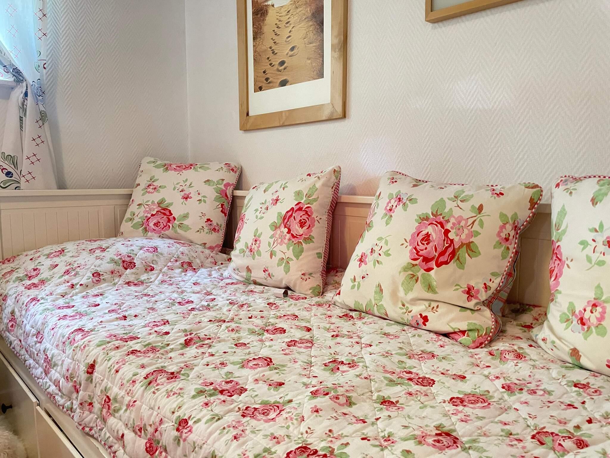 Stugan har plats för upp till 8 personer, fördelat på 6 bäddar i huvudstugan (en dubbelsäng + två bäddsoffor) samt 2 extrabäddar i en charmig liten gäststuga på tomten – perfekt för tonåringar, vänner eller ett par som vill bo lite för sig själva. Huset har en enkel men funktionell standard, bevarad i äldre stil och utrustad med det som behövs för ett bekvämt boende under sommaren. Här handlar det inte om lyx – utan om att få njuta av det enkla, leva uteliv och ha naturen och vattnet runt hörnet. När du inte vill laga mat hemma ligger en mycket uppskattad restaurang bara en kort promenad bort, och stranden bjuder på härliga bad, sand mellan tårna och magiska solnedgångar. Här trivs du som vill leva somrigt, socialt och naturnära – en plats att koppla av på, samla vänner eller familj och skapa minnen för livet.
