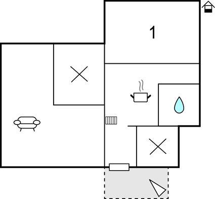 Opholdsstue - 2 Sovepladser. (Enkeltseng(e)).