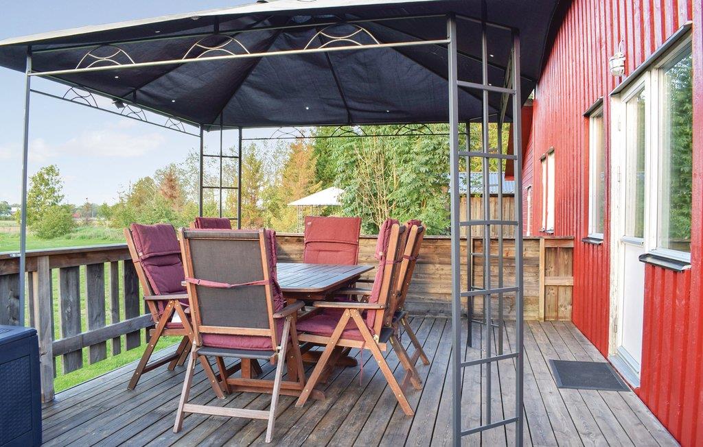 Benyt den store træterrasse til at nyde roen og det åbne landskab. Her kan I sidde under pavillonen, tænde op i grillen eller bare nyde solen i de behagelige havemøbler. Den rummelige grund, som I deler med det nærliggende feriehus, giver masser af plads til at slappe af eller læse en god bog i det fri.