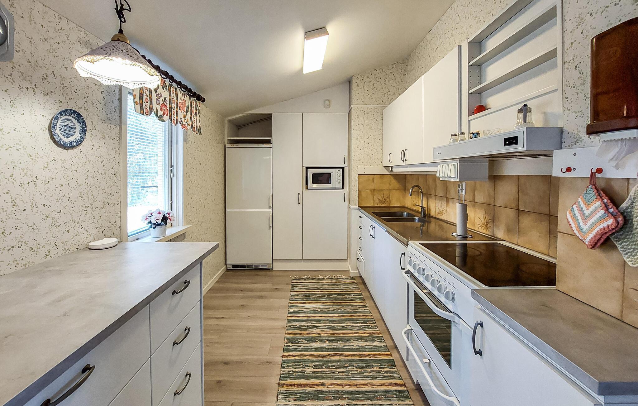 Tilbring jeres tid ude i dette kærligt møblerede feriehus lige ved Vitasjöns bred. Begynd dagene med udsigt til det stille vand, lyt til vinden i træerne og læg hverdagen bag jer. Store vinduespartier og en vidunderlig udsigt over søen venter jer i det hyggelige interiør. Find jer godt til rette på den rummelige hjørnesofa, læs en bog eller nyd aftenen sammen med spil og stimulerende samtaler. Brug køkkenet til omfattende madlavningsaftener eller tilbered en hurtig morgenmad, inden I begiver jer ud i naturen. Den tilstødende spiseplads lægger op til at nyde måltider sammen, mens brændeovnen sørger for hyggelig varme.