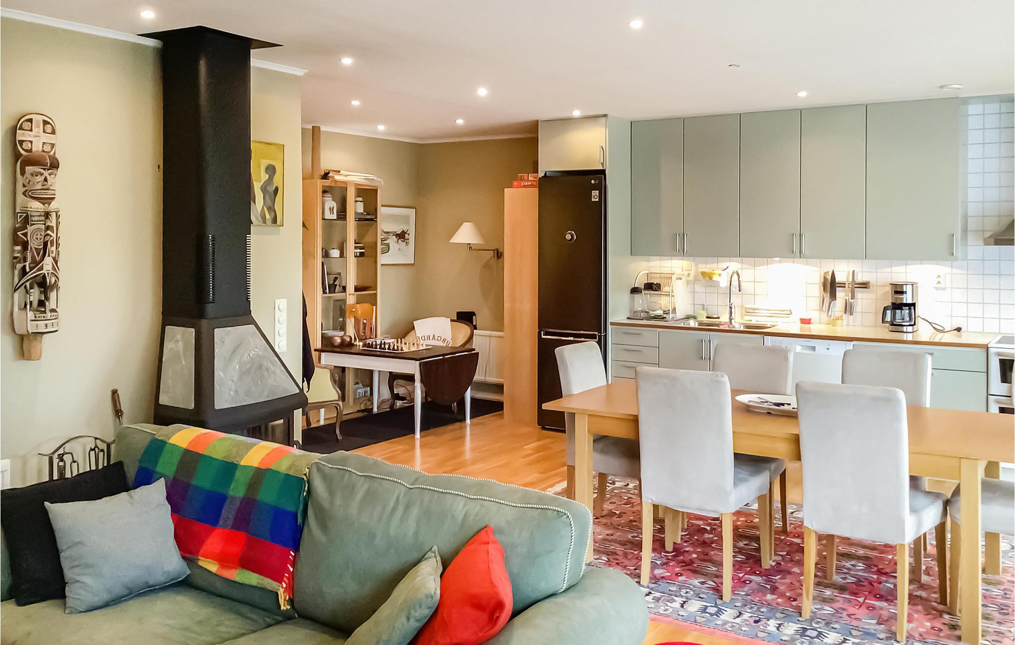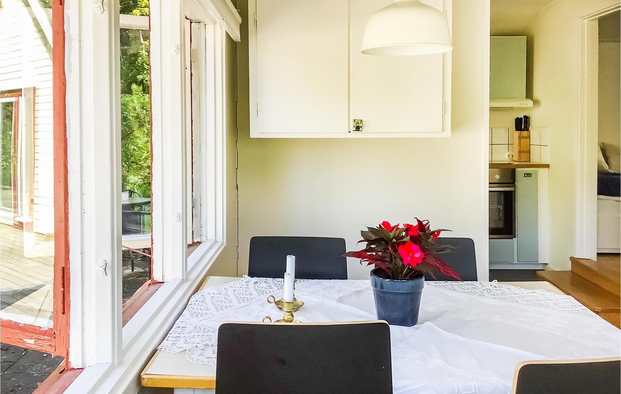 Leder du efter hyggelige rammer for din familieferie? Så ville dette rolige feriehus være et godt valg. Dette attraktive feriehus ligger nord for Stockholm, tæt på kysten. Gør brug af det veludstyrede køkken og nyd lækre måltider i spisepladsen eller i den lyse udestue. Tilbring omgængelige timer i stuen med dit yndlingsbrætspil, og gør dig komfortabel med din ferielæsning i den kølige sæson, mens du lytter til den knitrende ild. Når vejret er godt, inviterer den indhegnede have store og små til at tilbringe afslappende timer udendørs. Du bor i et roligt, børnevenligt miljø med grønne områder og tæt på havet. Pak picnickurven og badedragten til en solrig dag ude og find et idyllisk sted ved vandet. Du kan også bruge aktive timer på at spille tennis og minigolf i nærheden. En dejlig pause venter dig og dine kære i dette feriehus.