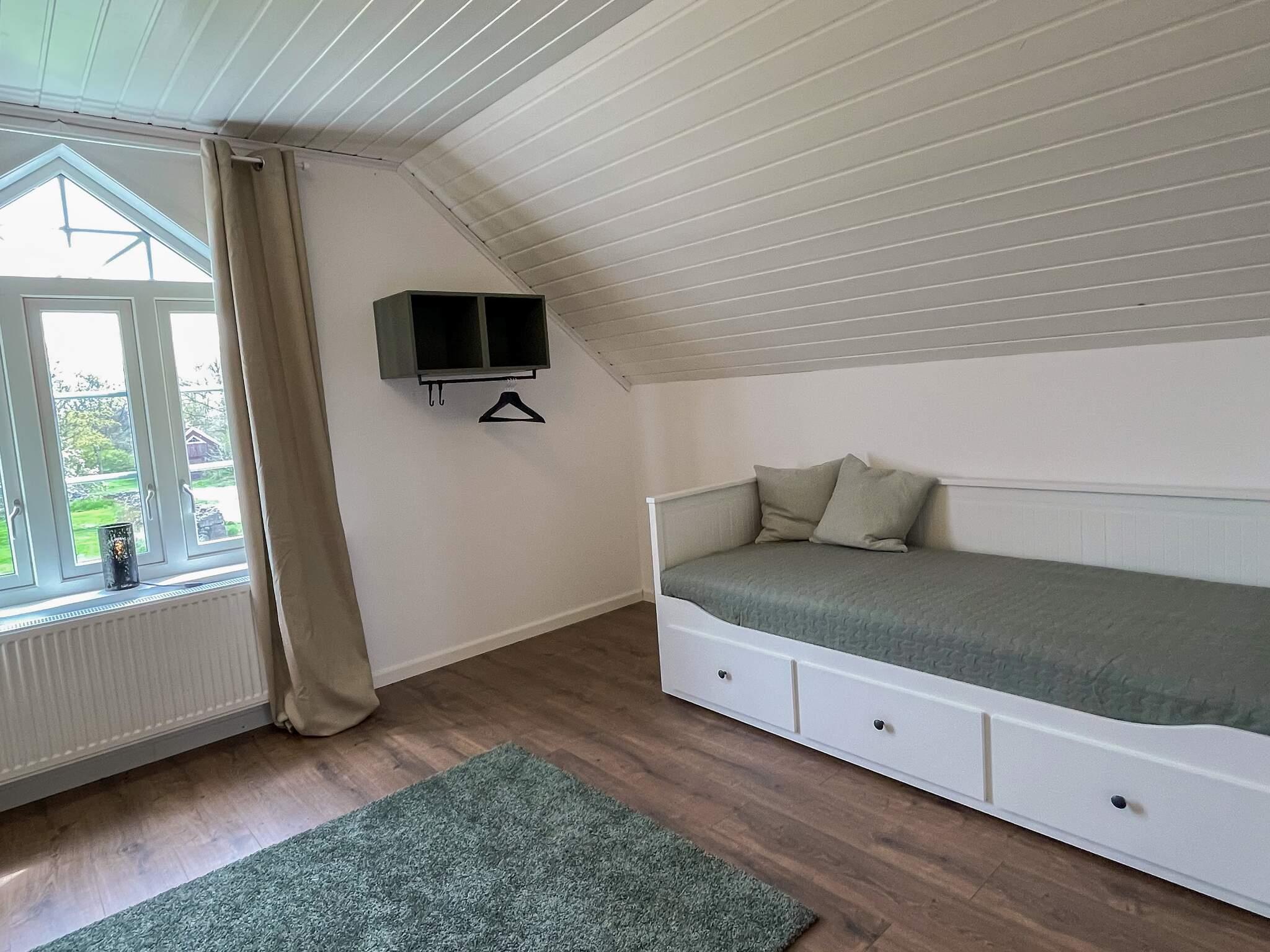 En trappa upp kan ni sova skönt i de vackra sovrummen med bra bäddar. I det ena sovrummet finns en dubbelsäng. I det andra finns en dagbädd som kan bäddas upp till en dubbelsäng samt två enkelsängar som är 120cm breda. Badrummet är fräscht och utrustad med både tvättmaskin och torktumlare.