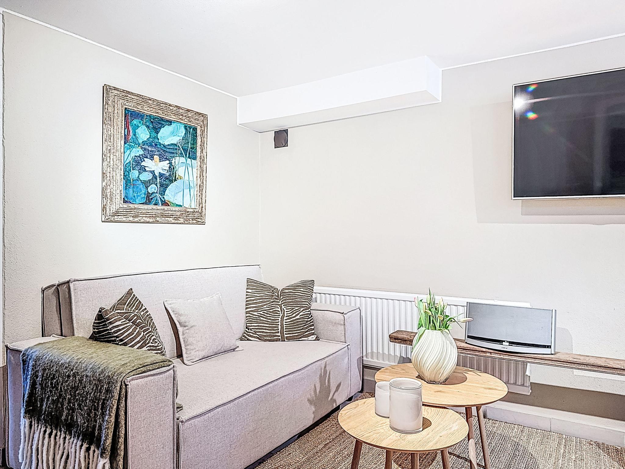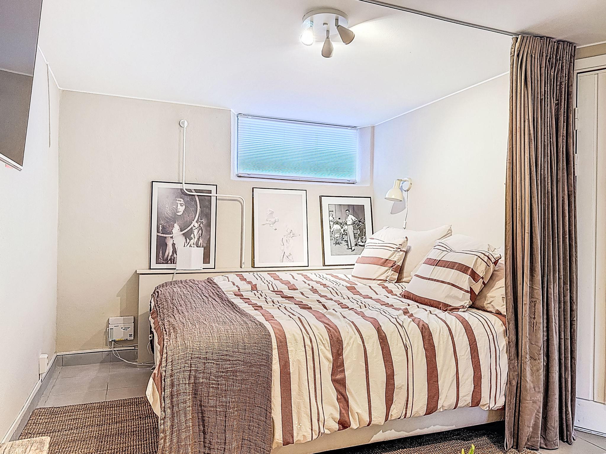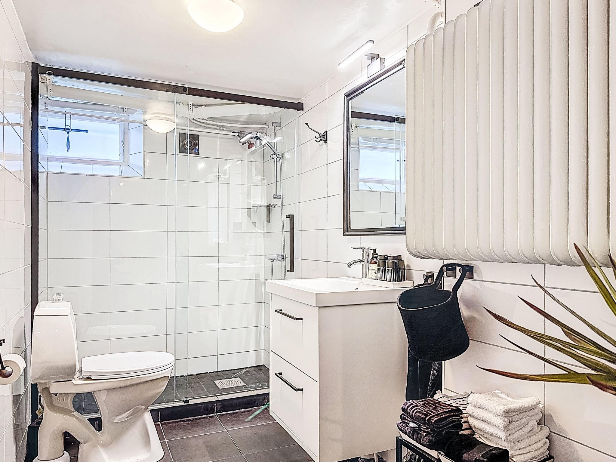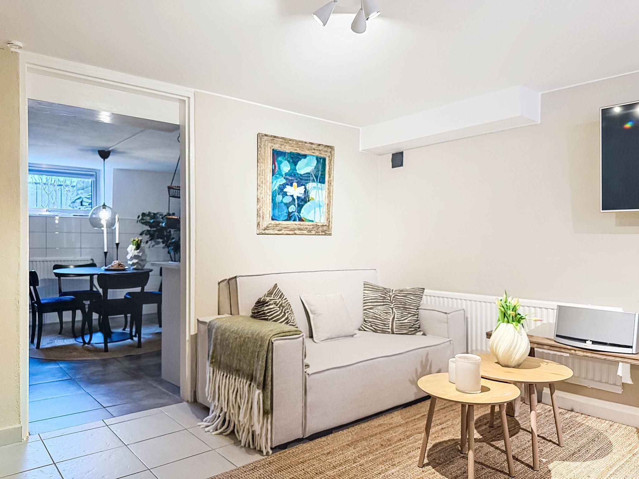 "Vårhemsplatsen", 2-room apartment 50 m2, lower ground floor. Modern and tasteful furnishings: open living/sleeping room with 1 sofabed (140 cm, length 200 cm), 1 double bed (180 cm, length 200 cm), TV. Open kitchen (4 hot plates, oven, dishwasher, toaster, kettle, microwave, freezer, electric coffee machine) with dining table. Shower/WC. Heating. Facilities: washing machine.