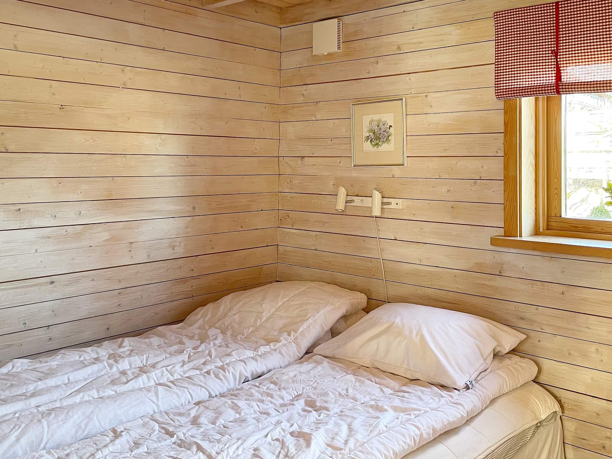 När ni kommer in i det kombinerade vardagsrummet och köket möts ni av en stor rymd med panoramafönster mot altanen och sjön. Köket är i modern stil och har all utrustning som du kan tänkas behöva, så som diskmaskin, ugn, spis, mikro, kaffebryggare, tekokare och mycket annat. Bredvid köket finner ni dom två sovrummen. Sovrummet till höger har en bred (120cm) enkelsäng och sovrummet till vänster en dubbelsäng (140cm). En trappa upp från vardagsrummet hittar ni sovloftet med en bred (120cm) enkelsäng samt en bäddsoffa för två personer. Härifrån sovloftet har ni en fin vy över stugan men också ut över grönska.