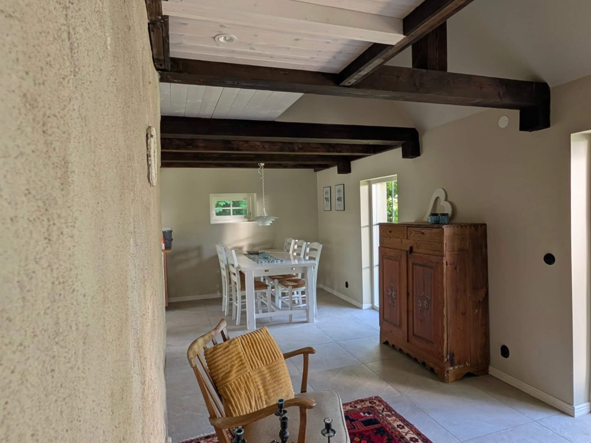Från köket tar du dig smidigt ut till en stor altan där ett härligt trädäck väntar – perfekt för en god frukost och underbara kvällar. Trädgården är lummig och generös, med plats för både lek och vila. Observera att en privat byggnad på tomten inte ingår i uthyrningen och inte får beträdas. Välkommen att njuta av lugnet, naturen och det moderna lantlivet – allt i ett!