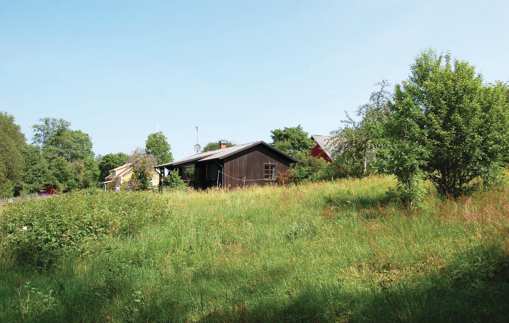 Hyggeligt feriehus ligger på en strandgrund ved Bolmån. Fra den overdækkede terrasse er der udsigt over vandet. Her kan du opleve elven eller fiske efter ørreder kun 20 m fra huset. Dette er et perfekt sted til afslapning og naturoplevelser hele året rundt. Der er mulighed for en ekstra seng. Nær Ljunby med forretninger og restauranger. I kan tage til Elinge og se Elgparken, nyrøget fisk kan i købe i Hamneda. I den skønne sø Exen kan I både tage på tur med kano og tilbringe en lang dag med at bade og sole. Husk madkurven.