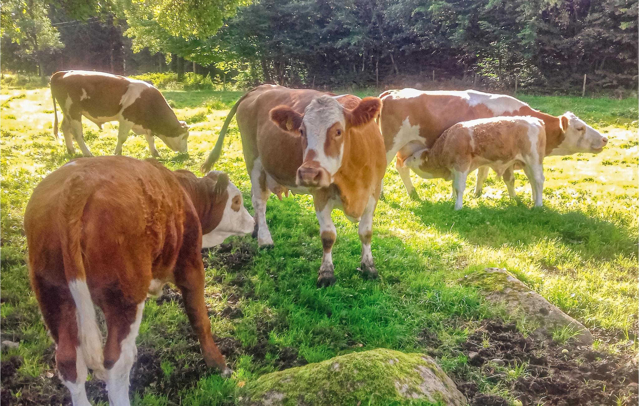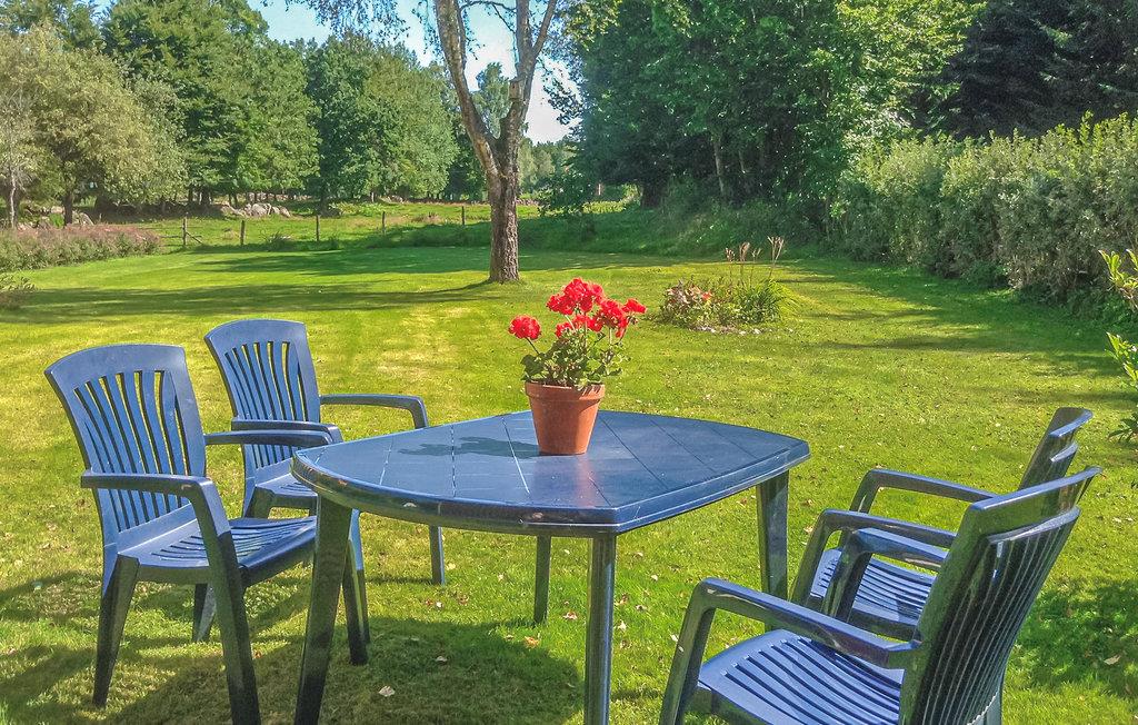 Udendørs finder I en dejlig grøn have med masser af plads til leg, spil og afslapning for hele familien. Her er I omgivet af marker med græssende køer.