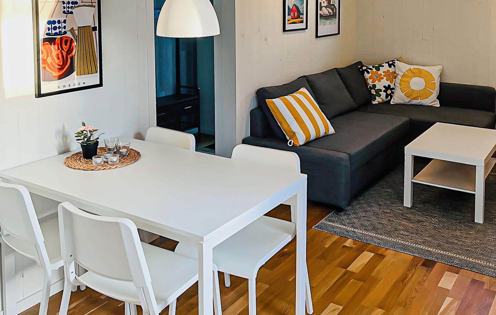 I dette attraktive hus får I den perfekte base for årets familieferie i absolut skønne omgivelser. Huset er komfortabelt indrettet med en hyggelig opholdsstue, hvor I kan hvile stængerne og slappe af efter en aktiv dag i naturen. Og måske børnene skal bygge hule og sove på hemsen? Nyd godt af den kompakte og flotte indretning i ét rum og tilbered familiens livretter i køkkenet, inden I trækker over i sofaen med snacks og en god film på tv'et.
