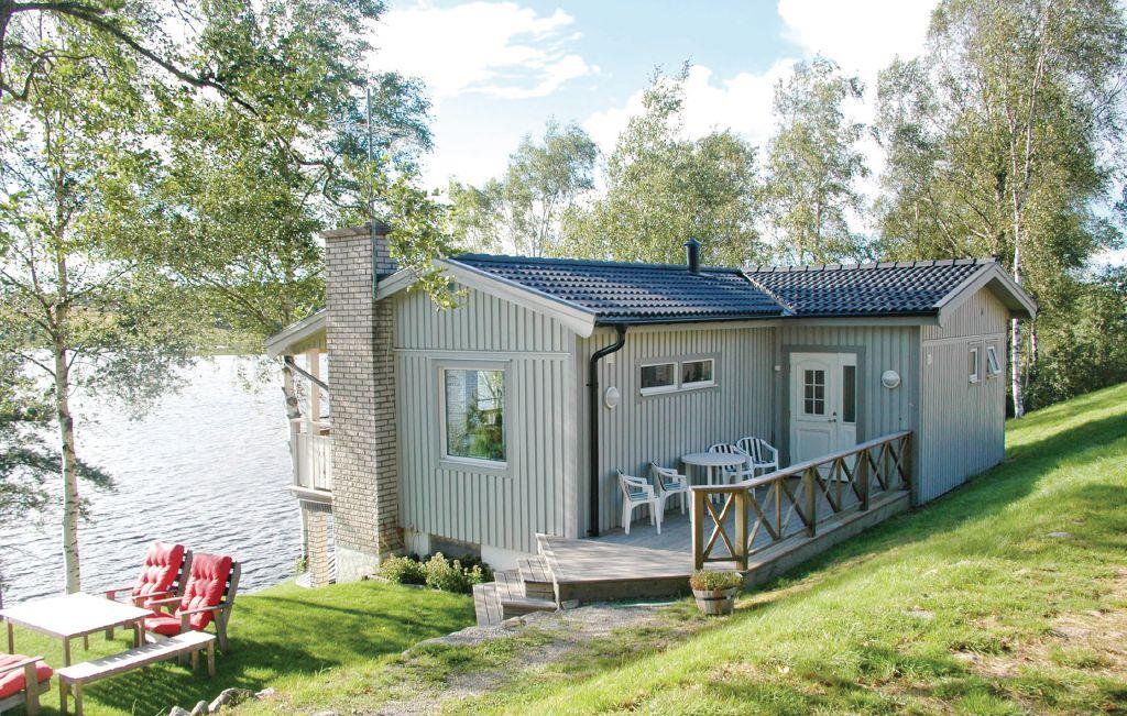 Forkæl jer selv med en ferie i dette feriehus med søen Sannesjön lige nedenfor grunden - kun 20 m fra huset.