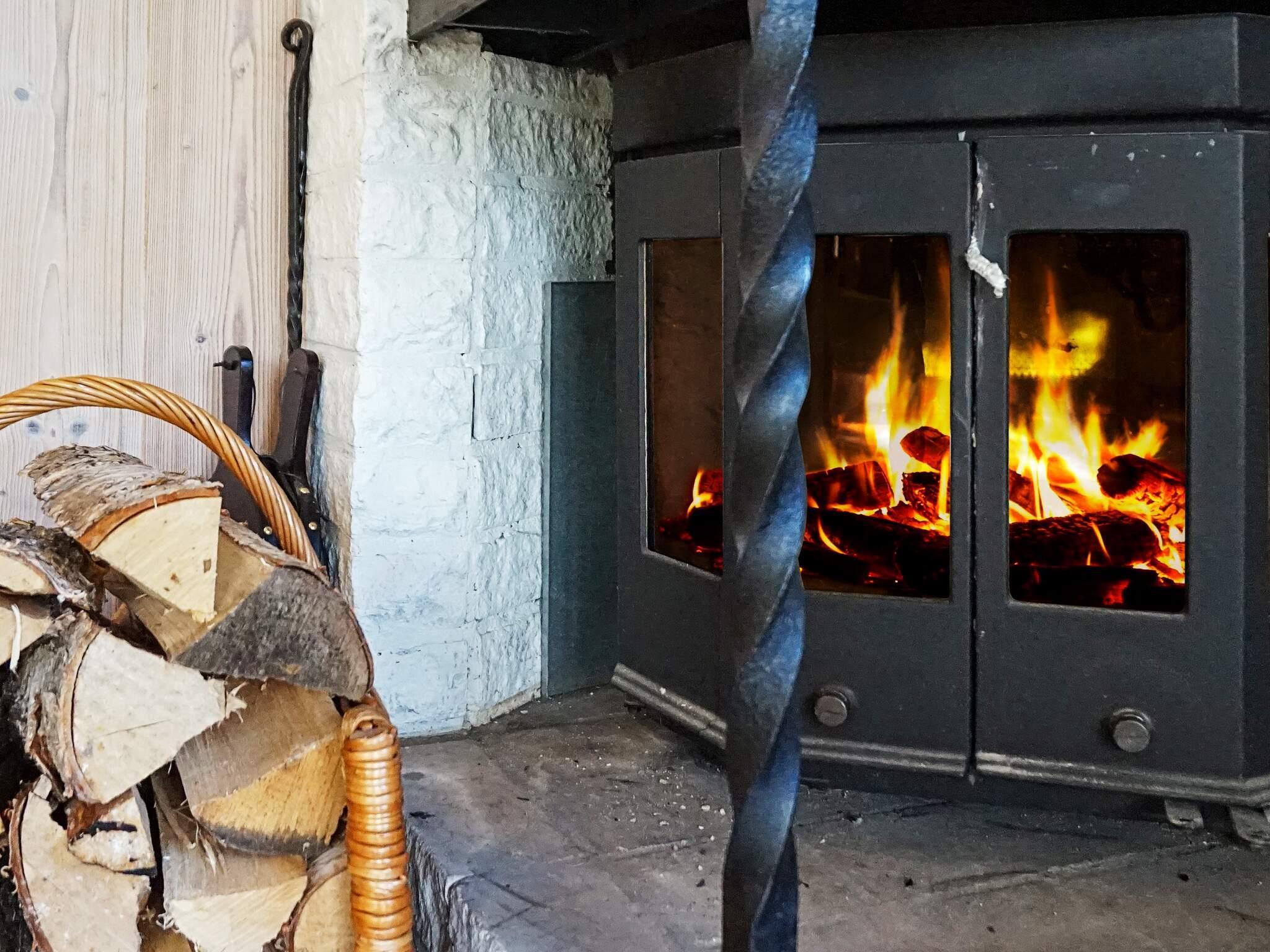 På gården finns tre separata stugor i anslutning till varandra. Den större stugan har ett sovrum med en dubbelsäng (160cm). Har man en liten som sover i resesäng så finns en sådan att låna och den får med lätthet plats i det här sovrummet. Ett komplett kök med kyl & frys, micro, spis med ugn samt kaffebryggare och en barnstol till bebisen. I anslutning till köket finns ett rymligt vardagsrum med braskamin för mysiga kvällar och via altandörr kommer ni ut på den härliga uteplatsen som har egen öppning ut till gräsmattan. Här finns utemöbler och många utav dagens måltider intas gärna här. Om sommaren när det är varmt kan man skapa korsdrag för svalka om solen ligger på. I den här stugan finns inget badrum.