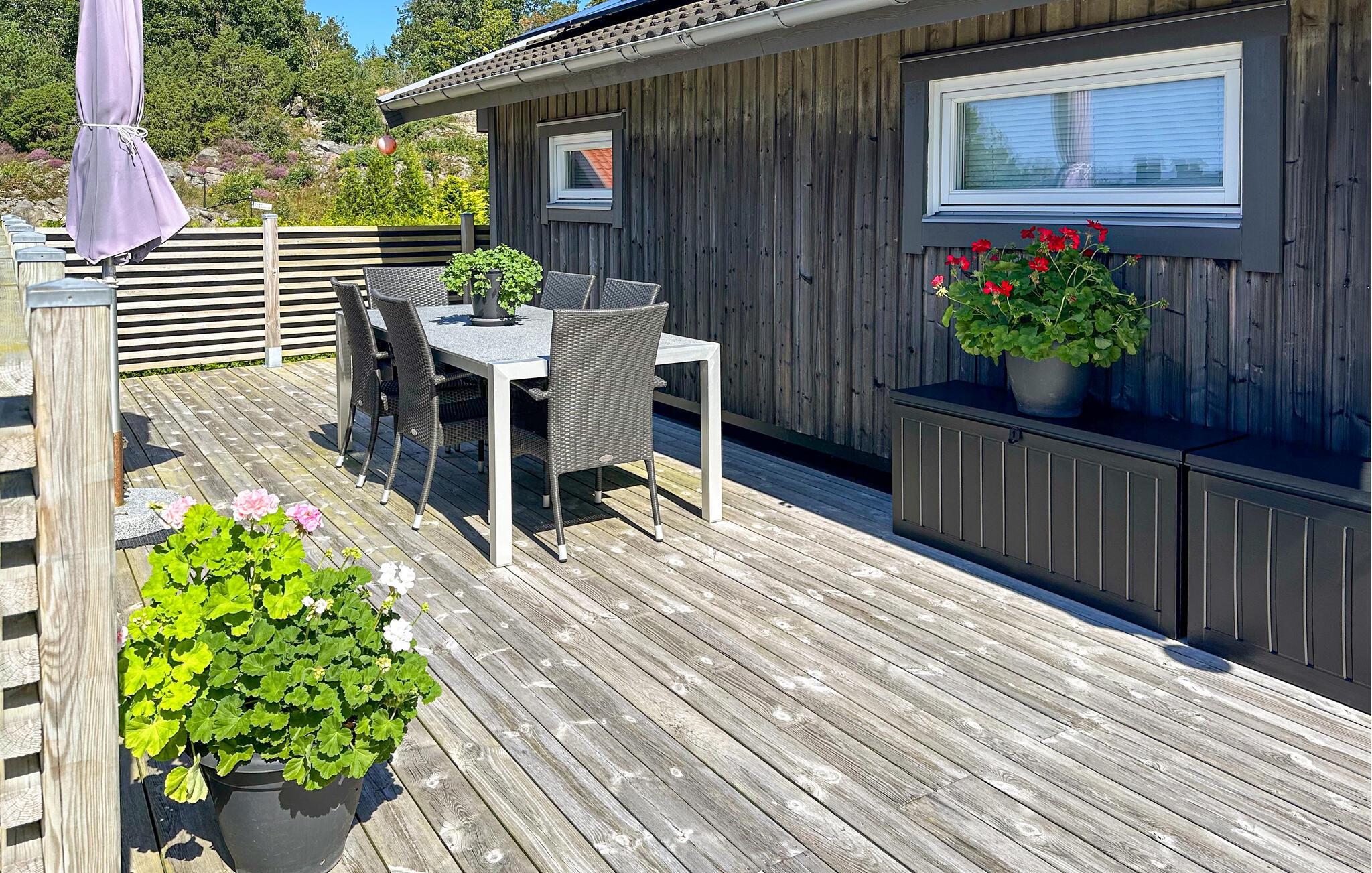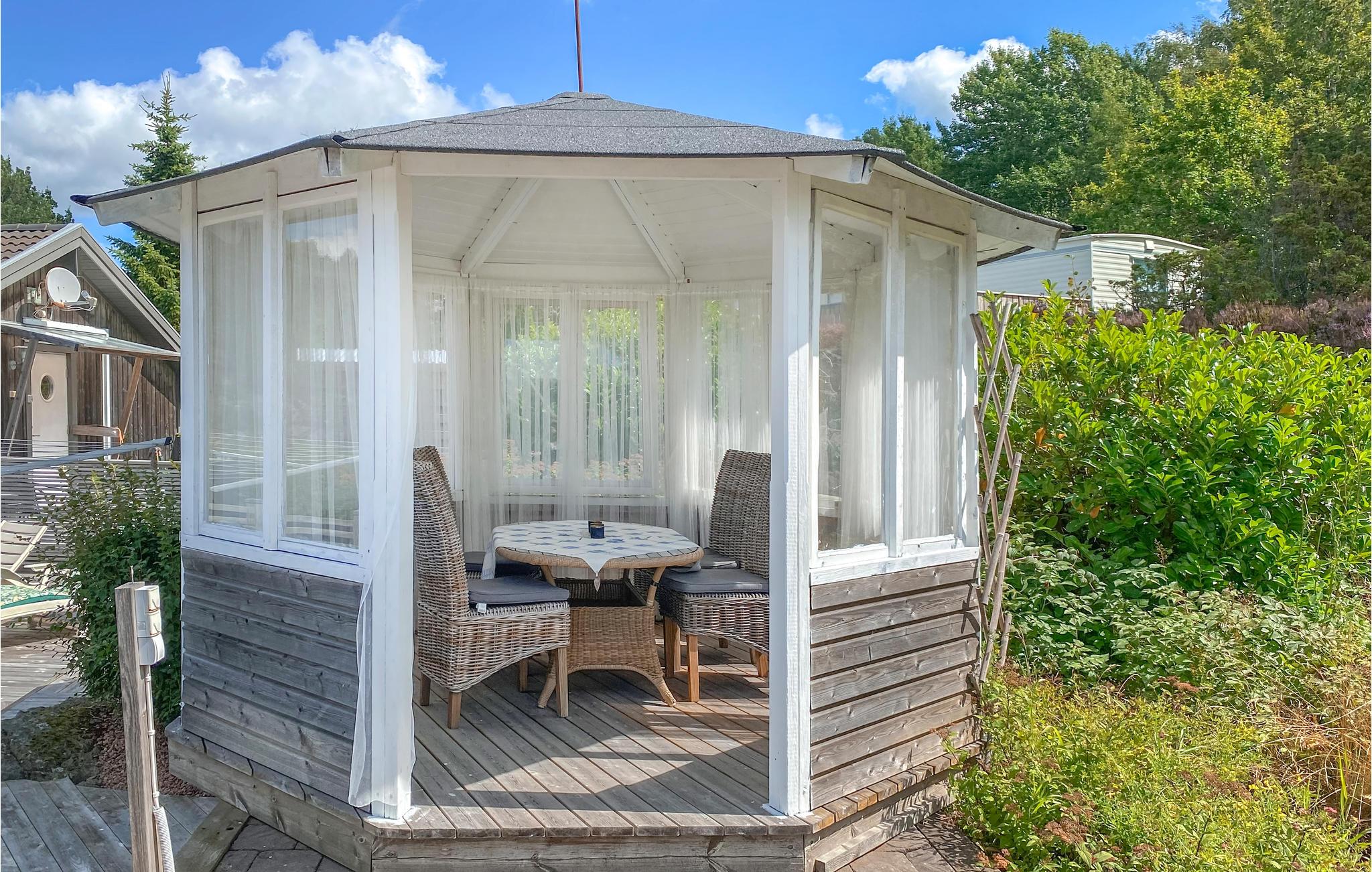 Hyggeligt indre med to soveværelser og sovesofa i stuen der er åben mod køkkenet. Nær til en børnevenlig badeplads og nær klipperne til mere udfordrende bade- og fisketure. Der er kun 25 minutter til et af Sveriges største indkøbscentre, med restauranter og butikker til gode priser. Besøg også Uddevalla, som er en hyggelig havneby med bl.a. en skøn havnepromenade og med skærgårdsbåde, som tager jer med ud til de små øer. Andre skønne steder er Gullholmen, Mollösund og Kärringön, som også er inden for nem afstand.