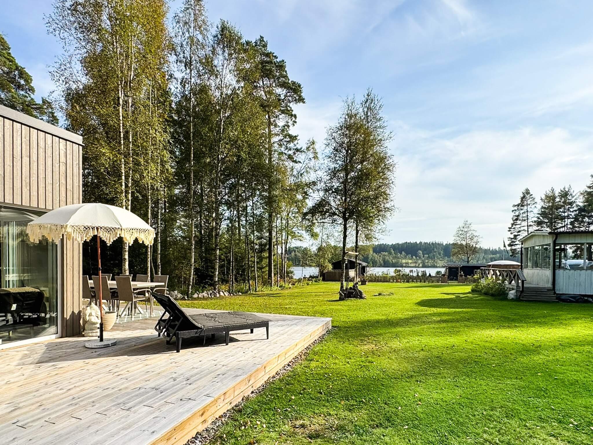 Med fantastiskt sjö nära läge hittar ni här nybyggda stugan med sjöutsikt. Stugan är helt nybyggd, och är inte jättestor men välplanerad. Stugan har ett litet kök som sitter ihop med vardagsrums delen, två sovrum, ett med en dubbelsäng och ett med en familjesäng, 140+80 för 2-3 personer. Ett fantastiskt badrum med dusch och wc. Matplats är främst utomhus på den stora altanen, här har ni en härlig utsikt av sjön. Det finns även två barstolar vi köksödelen av köket.