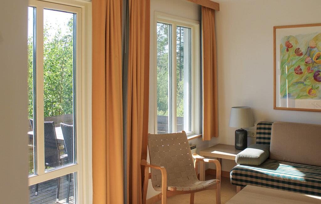 Feriekomplekset ligger højt tæt ved skoven og byder på en smuk udsigt over Härån-floden. Tag på vidunderlige gå- og vandreture eller besøg en nærliggende ejendom med wellness-tilbud. I kan også nemt nå Astrid Lindgrens verden herfra.