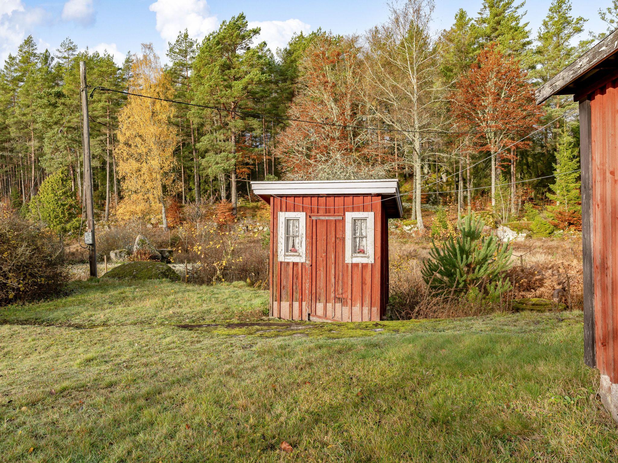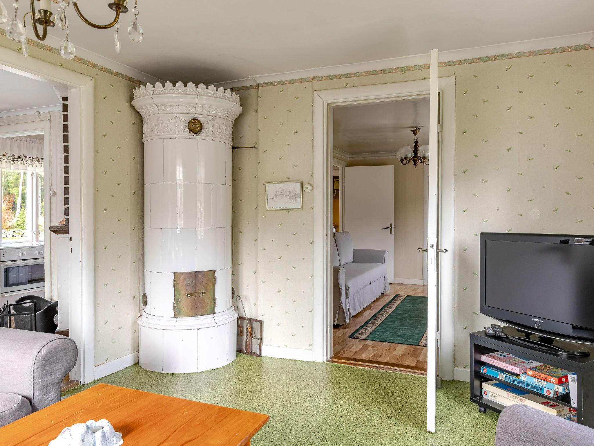Cosy house "Svenstorp". 15 km from the centre of Tvin, 6 km from the centre of Holmsjö, 31 km from the centre of Karlskrona, 500 m from the lake, in the countryside. Private: natural state property 1'000 m2, garden (not fenced) with trees. Rowing boat, parking (for 2 cars) at the house. Shop 30 km, grocery 6 km, supermarket 30 km, restaurant 6 km, bakery 6 km, bus stop 6 km, railway station "Karlskrona" 30 km, ferry "Helsingboeg" 230 km, sandy beach "Alljungen" 500 m.