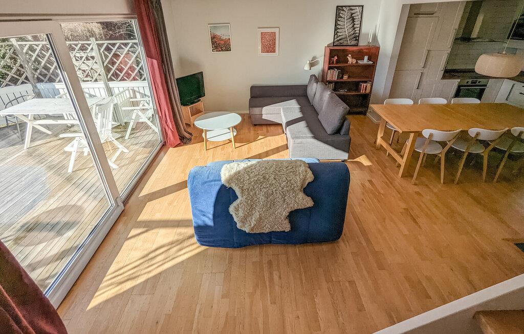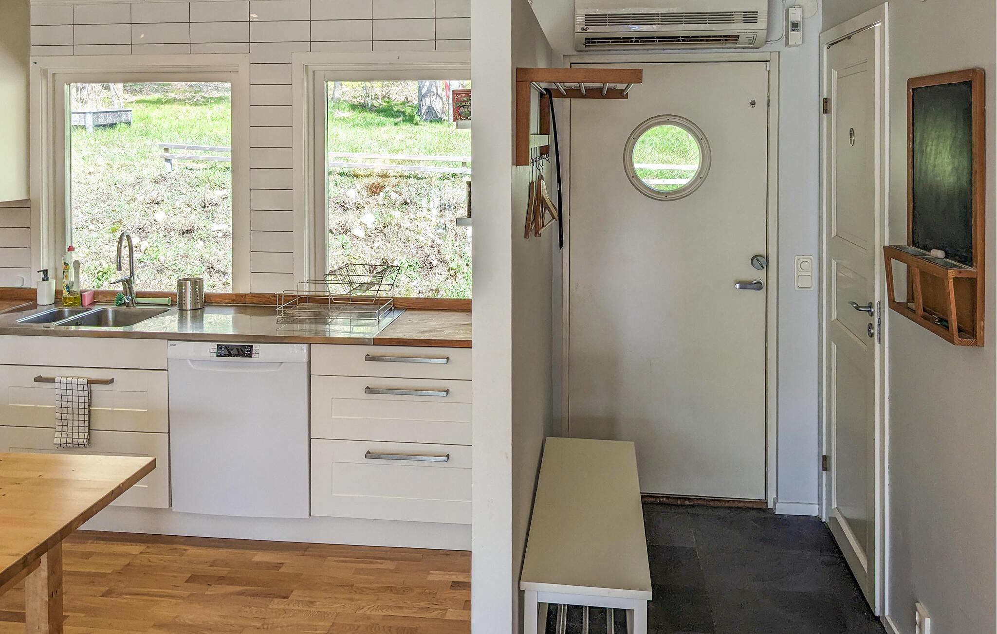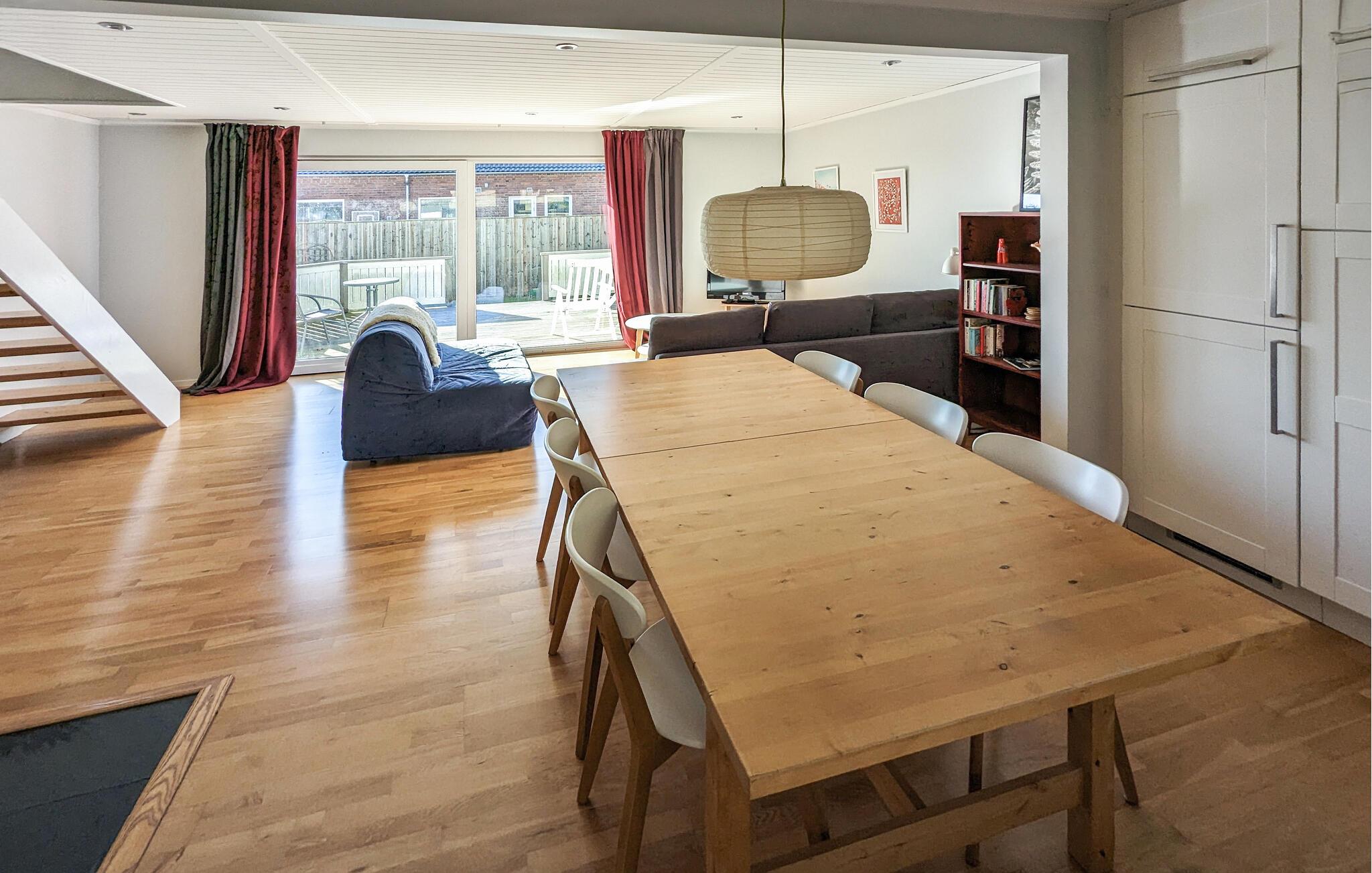 Store vinduer i dette indbydende feriehus tilbyder en smuk udsigt over det omkringliggende landskab og giver også det rummelige interiør masser af naturskønt lys. Glæd jer til hyggelige måltider og sjove spilleaftener ved det indbydende spisebord, og efter en lang dag kan I hygge jer i den komfortable sofagruppe til en spændende film.