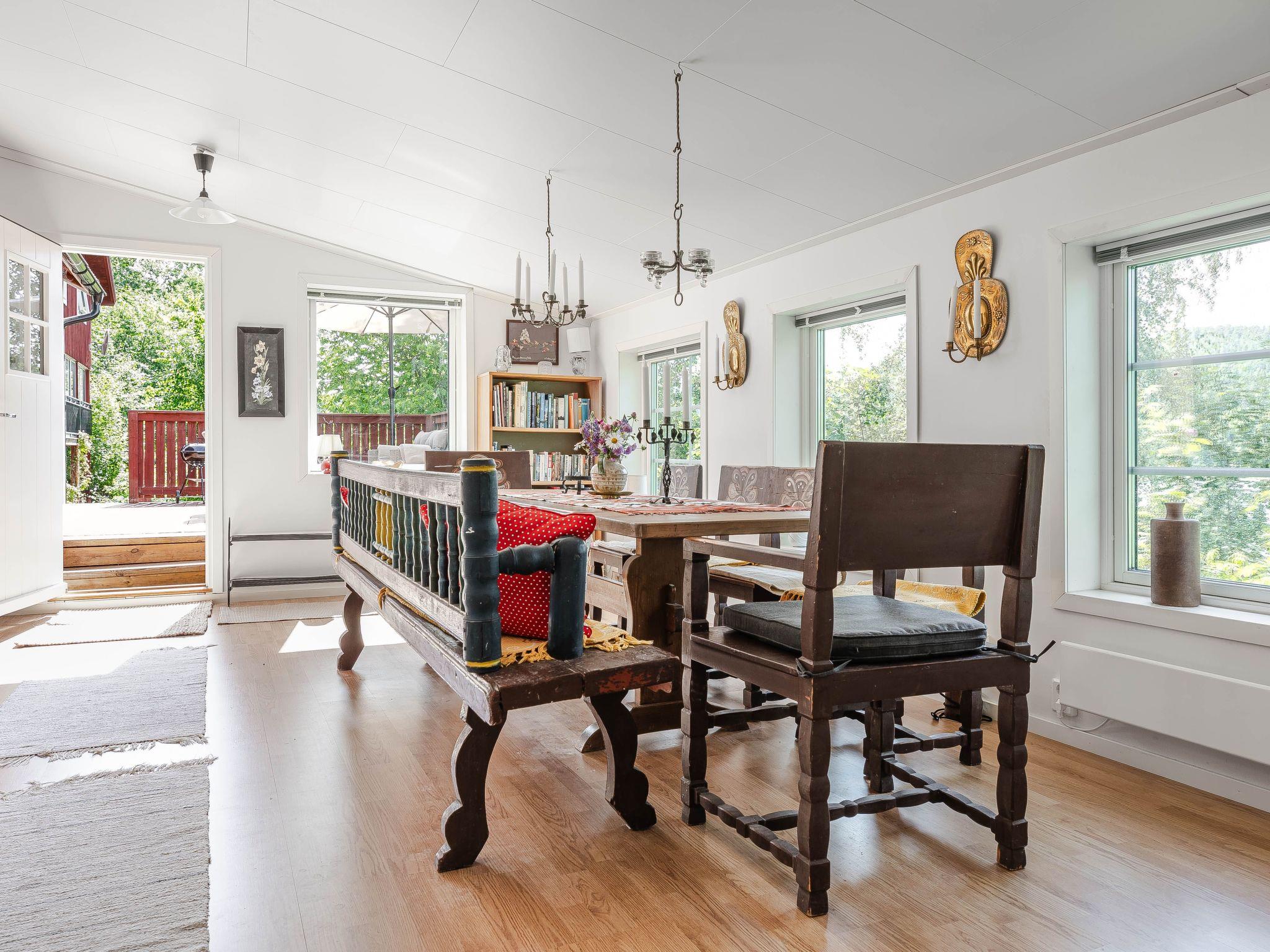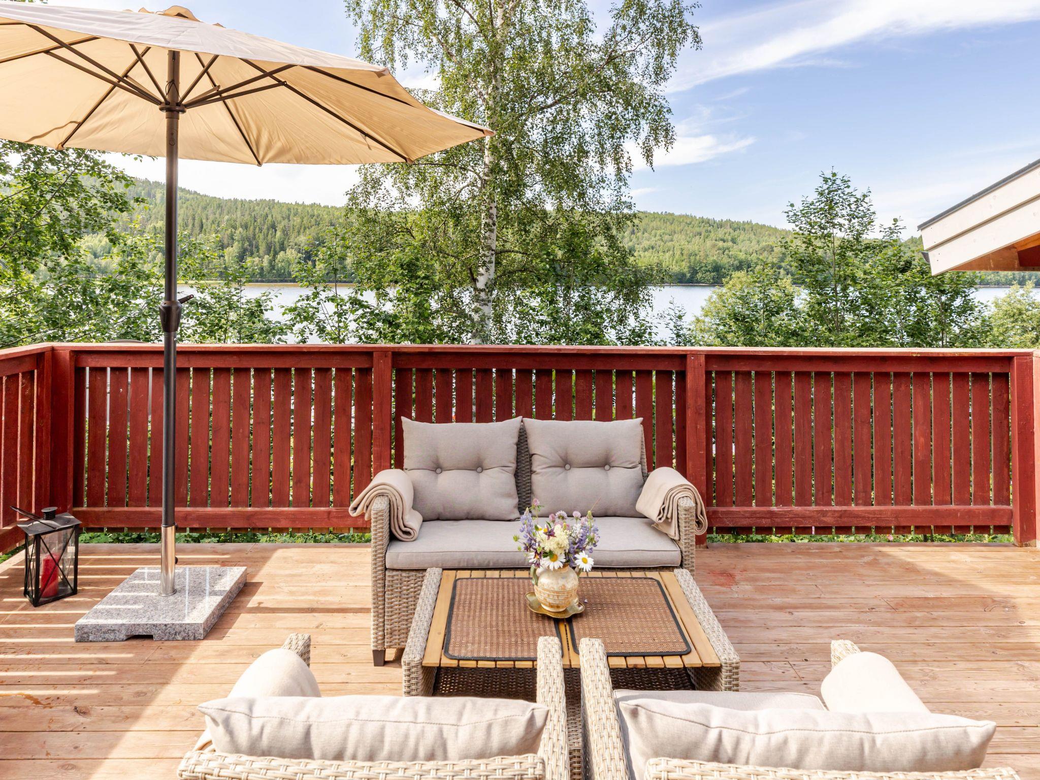 "Sjödrömmen", 4-room house. Comfortable and modern furnishings: living/dining room with Scandinavian wood stove. Exit to the terrace. Living room with Scandinavian wood stove and TV. 1 double bedroom with 1 double bed (180 cm, length 200 cm). 1 double bedroom with 1 double sofabed (160 cm, length 200 cm). Open kitchen (oven, dishwasher, 4 induction hot plates, toaster, kettle, microwave, freezer, electric coffee machine). Exit to the garden. Shower/WC. Electric heating, forced-air heating. Upper floor: (open staircase) open small sleeping alcove with sloping ceilings with 1 bed (90 cm, length 200 cm). Parquet floors. Terrace furniture, barbecue. Very beautiful panoramic view of the lake. Facilities: Internet (WiFi, free). Please note: non-smoking house. Maximum 1 pet/ dog allowed. Smoke alarm, fire extinguisher.