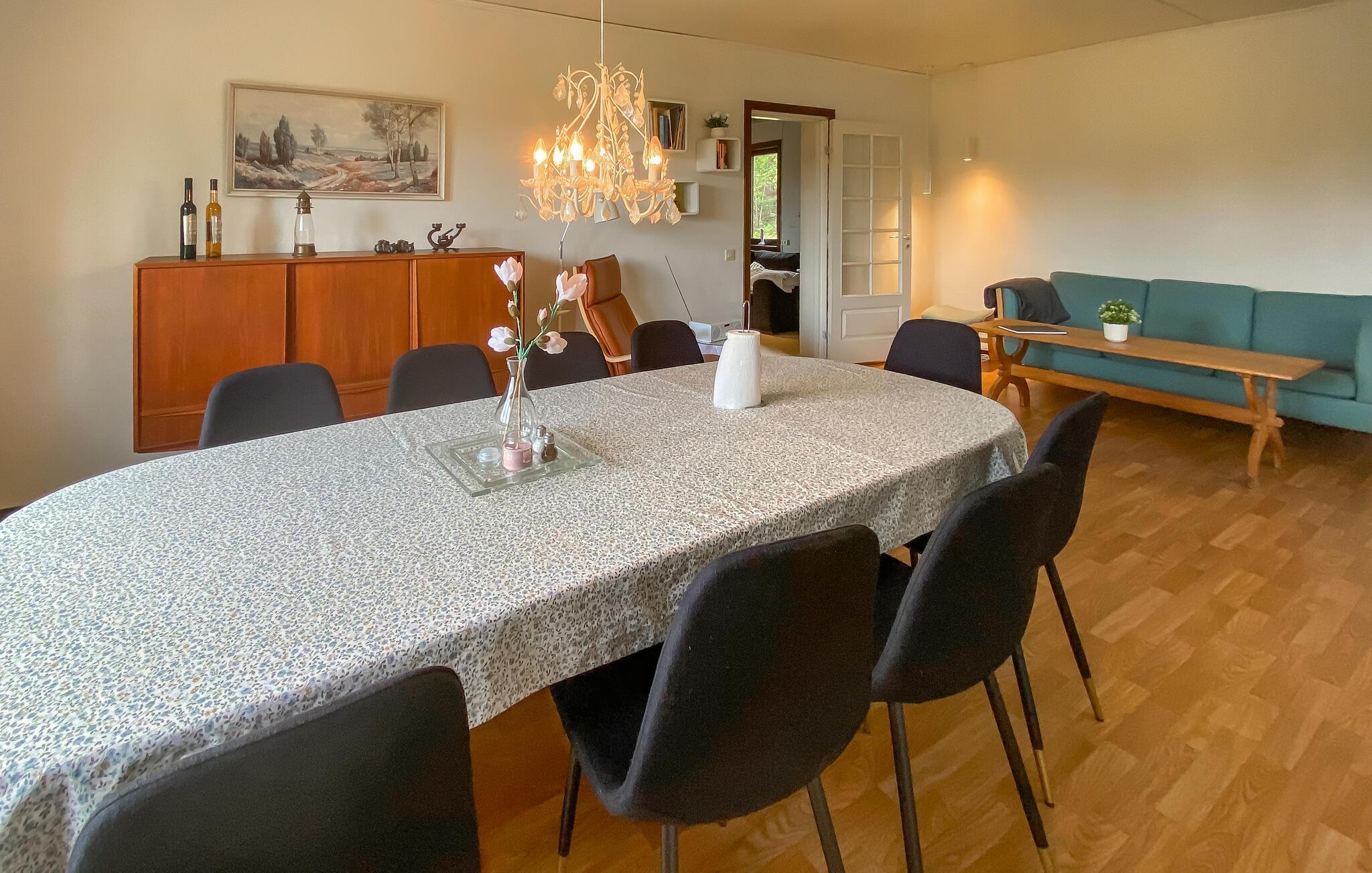 Velkommen til huset, der byder jer velkommen midt i et malerisk landskab og tilbyder plads til endnu en større familie. Med sine hyggelige møbler og lyse værelser er det den ideelle base for en behagelig pause i attraktive omgivelser. Nyd måltiderne sammen ved det lange spisebord, og senere inviterer komfortable sofaer jer til at sidde sammen i lang tid og lægge planer for den næste dag.