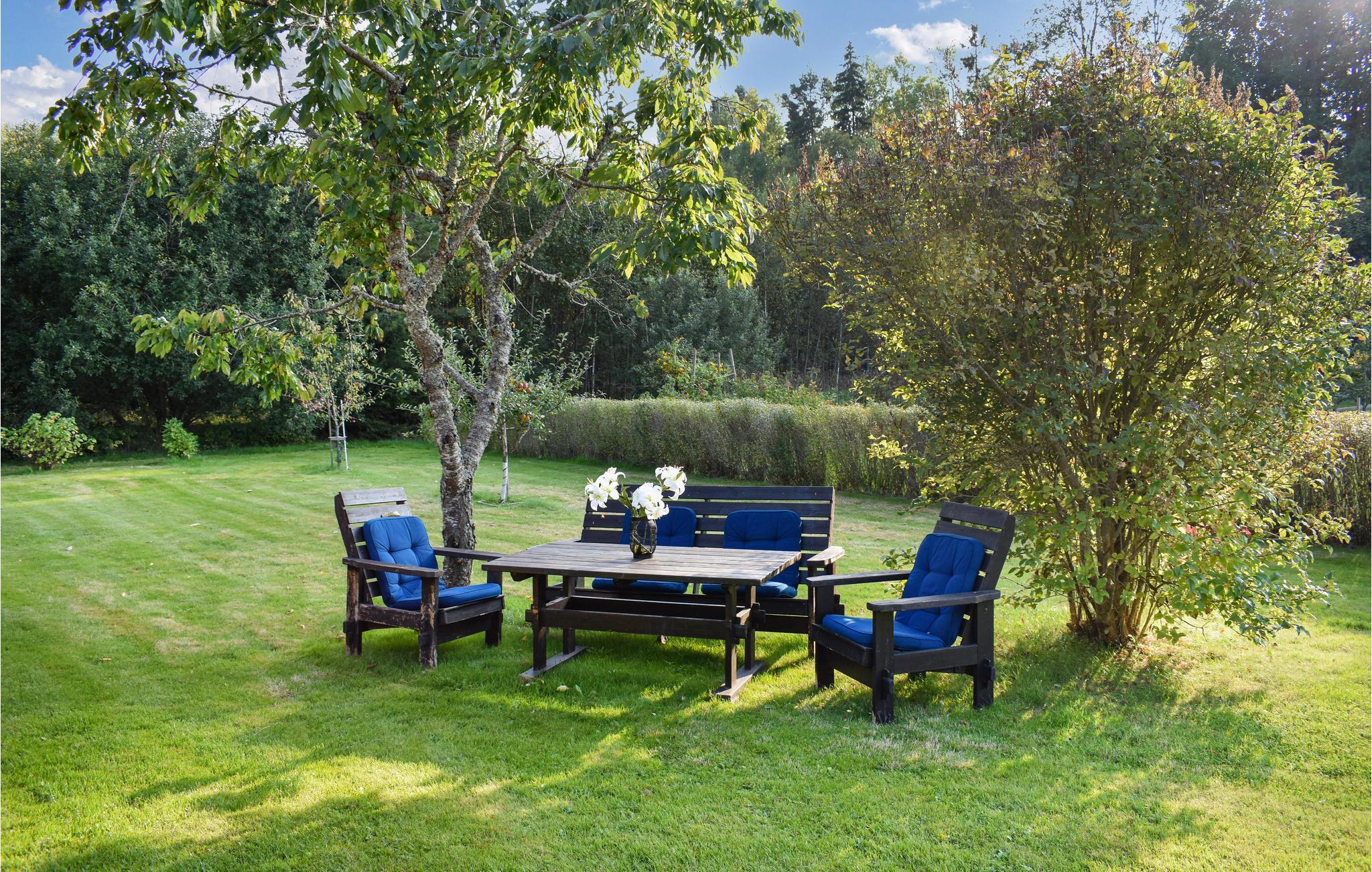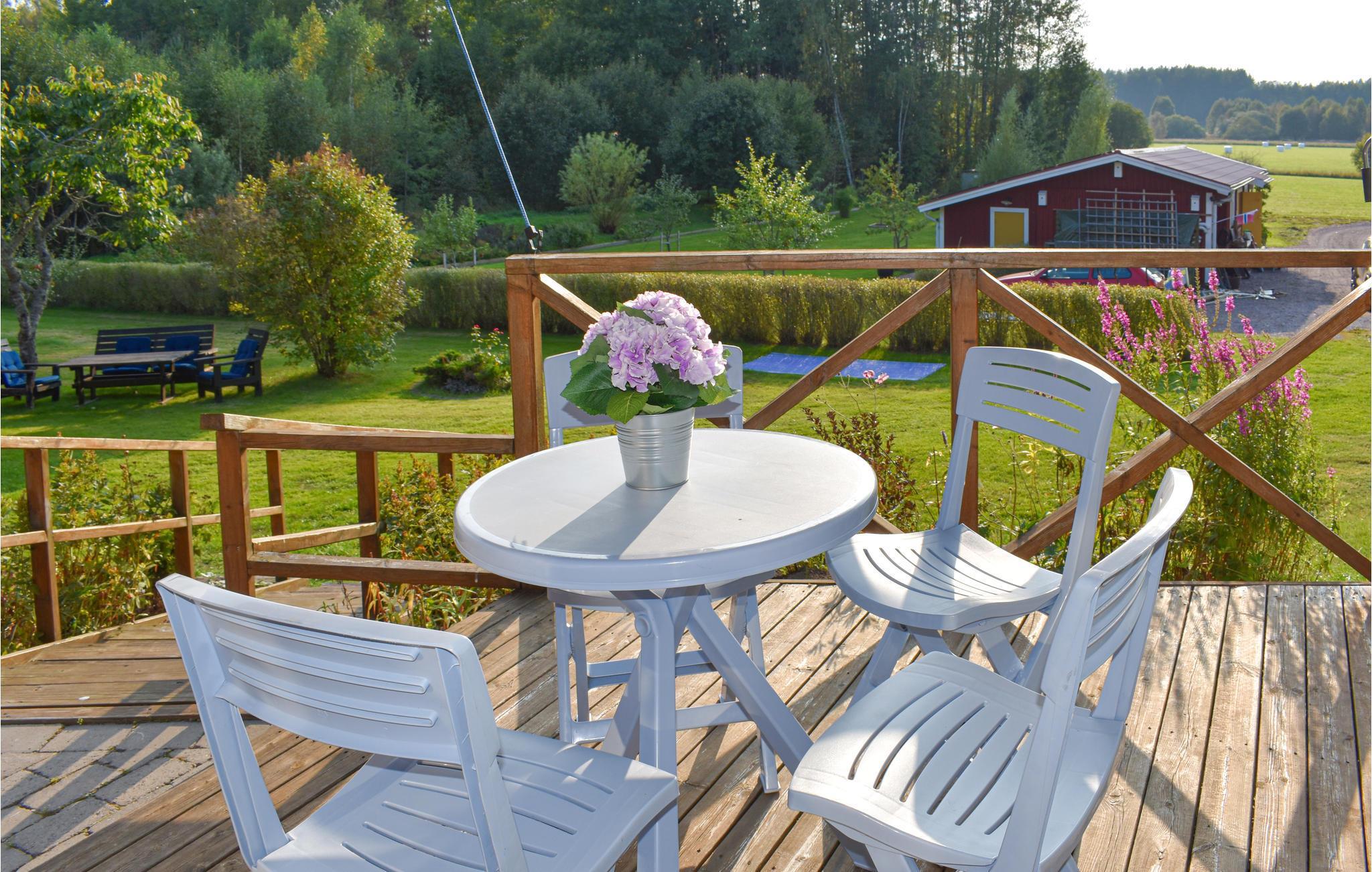 I regionen mellem Vättern og Linköping kan I tilbringe jeres ferie i dette hyggelige træhus. Sæt jer omkring pejsen på kølige dage og, nyd den behagelige varme. I den store velholdte have er der flere hyggelige fællesarealer med siddepladser. Nyd jeres måltider i det fri, spil kort, eller slap af i solen. Her finder I også økotoilettet, der er placeret i et lille træhus.