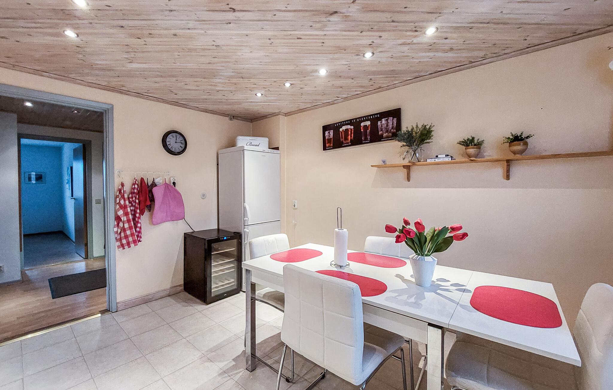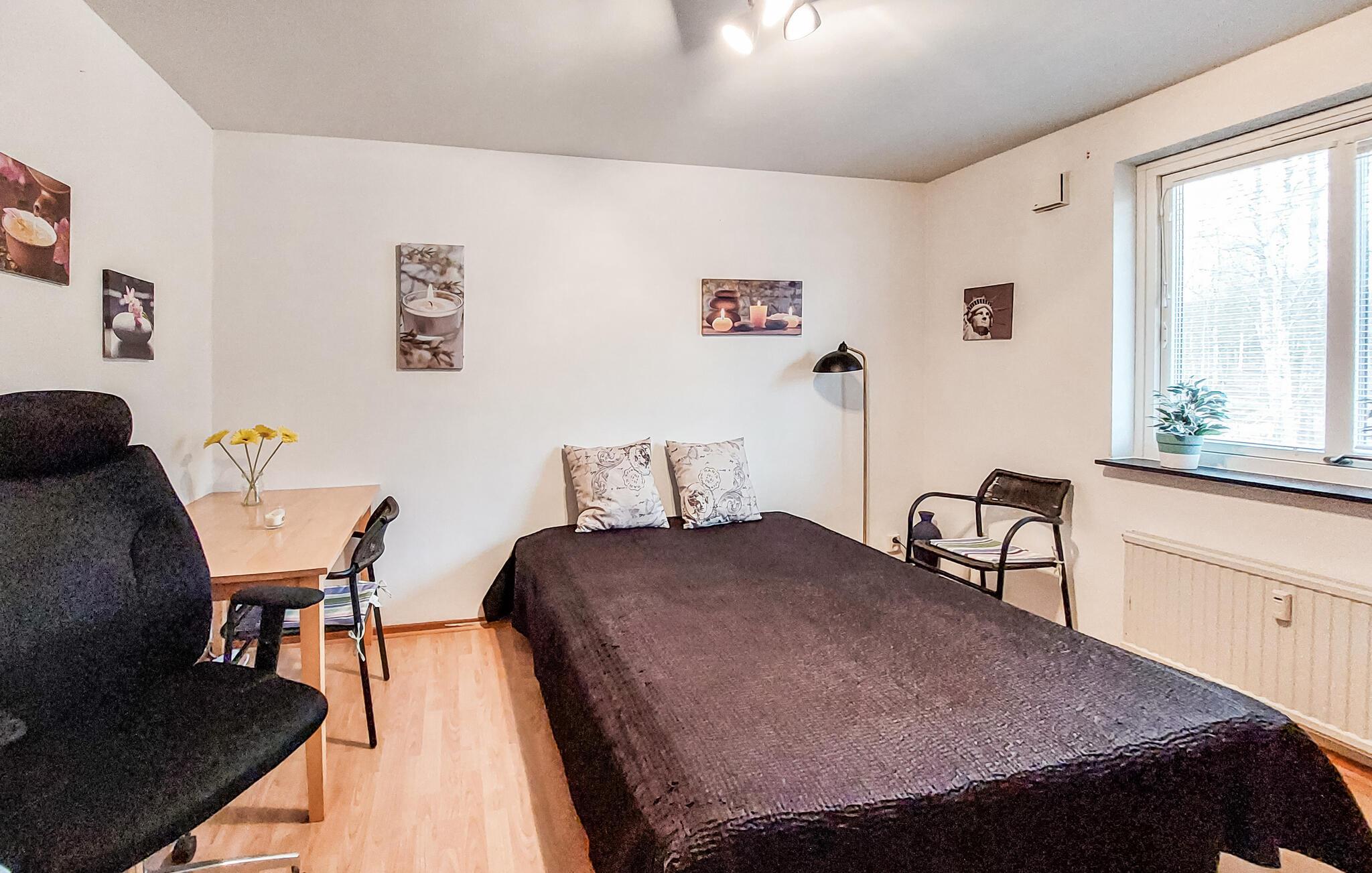 Denne indbydende ferielejlighed i udkanten af ??Hyltebruk i Småland er det ideelle sted for afslappende dage og spændende udforskning. Nyd den rolige beliggenhed, den naturlige karakter og den hjemlige atmosfære. Find jer godt til rette på sofaerne eller lænestolene i den lyse, smagfuldt designede lejlighed med åben opholdsstue og afslut dagen med en film eller en god bog. Lyse vægge, naturlige materialer og nænsomt udvalgte detaljer sikrer en behagelig opholdsoplevelse. Brug det rummelige køkken med spisebord til fælles madlavning og hyggelige måltider.