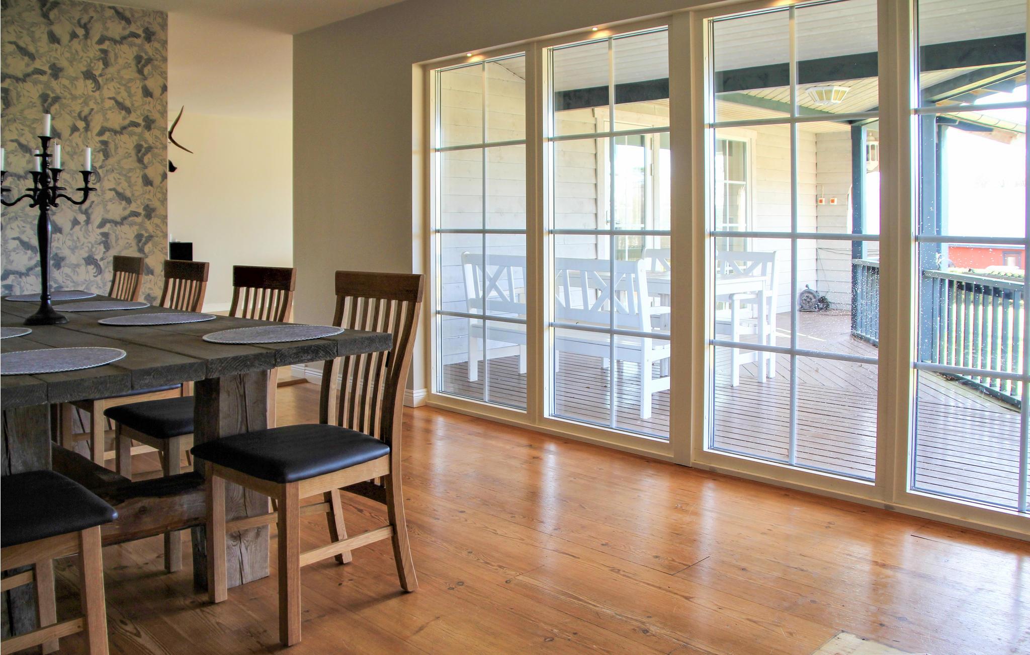 Der er hyggeligt i de store fællesarealer som stuen og spisestuen med brændeovn. På den møblerede terrasse finder I alt, hvad I behøver til de lange, lyse grillaftener i skovens vidunderlige stille ro.