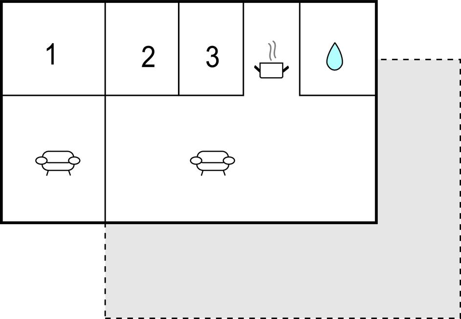 Indkvarteringen har 6 senge, der er opdelt i 3 soveværelser. 2 soveværelser har køjesenge og et soveværelse har 2 enkeltsenge. Køkkenområde og stue med spiseplads, en stue, et badeværelse med bruser og toilet og en dejlig terrasse med udemøbler.