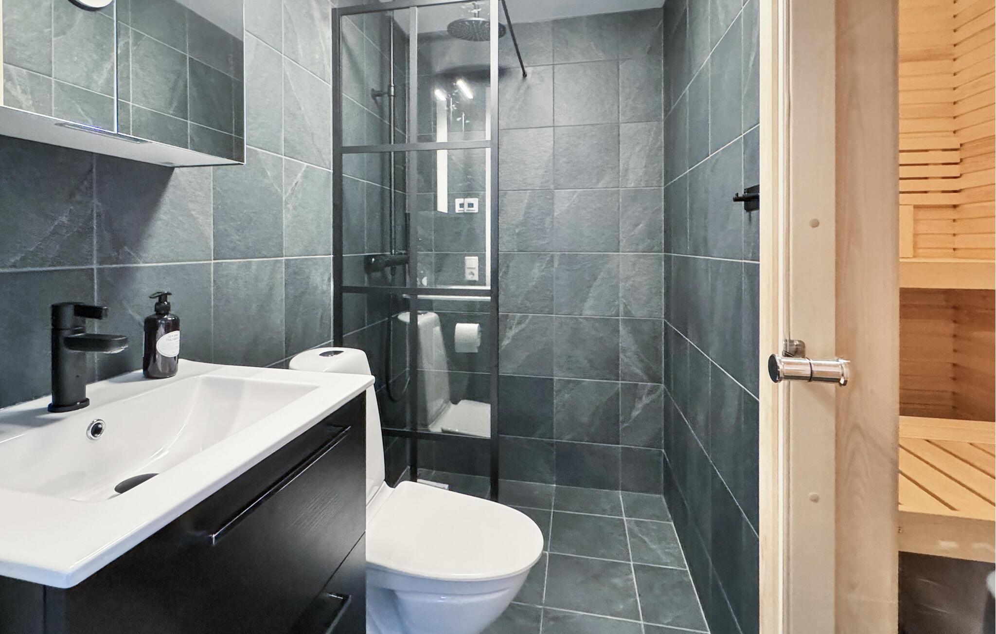 Lejligheden fremtræder varmt og indbydende, og indretningen er virkelig elegant. I finder her en lille oase af fred, hvor I kan koble af, lade hverdagen blive derhjemme og hvile stængerne efter en aktiv feriedag. Lad den stå på klassisk feriehygge her; gør madlavningen til et fornøjeligt fællesprojekt og udfordr familien til brætspil om aftenen i stuen. Skal I gøre det ekstra godt for jer selv, kan I fyre op i saunaen og svede alle bekymringerne ud af kroppen.