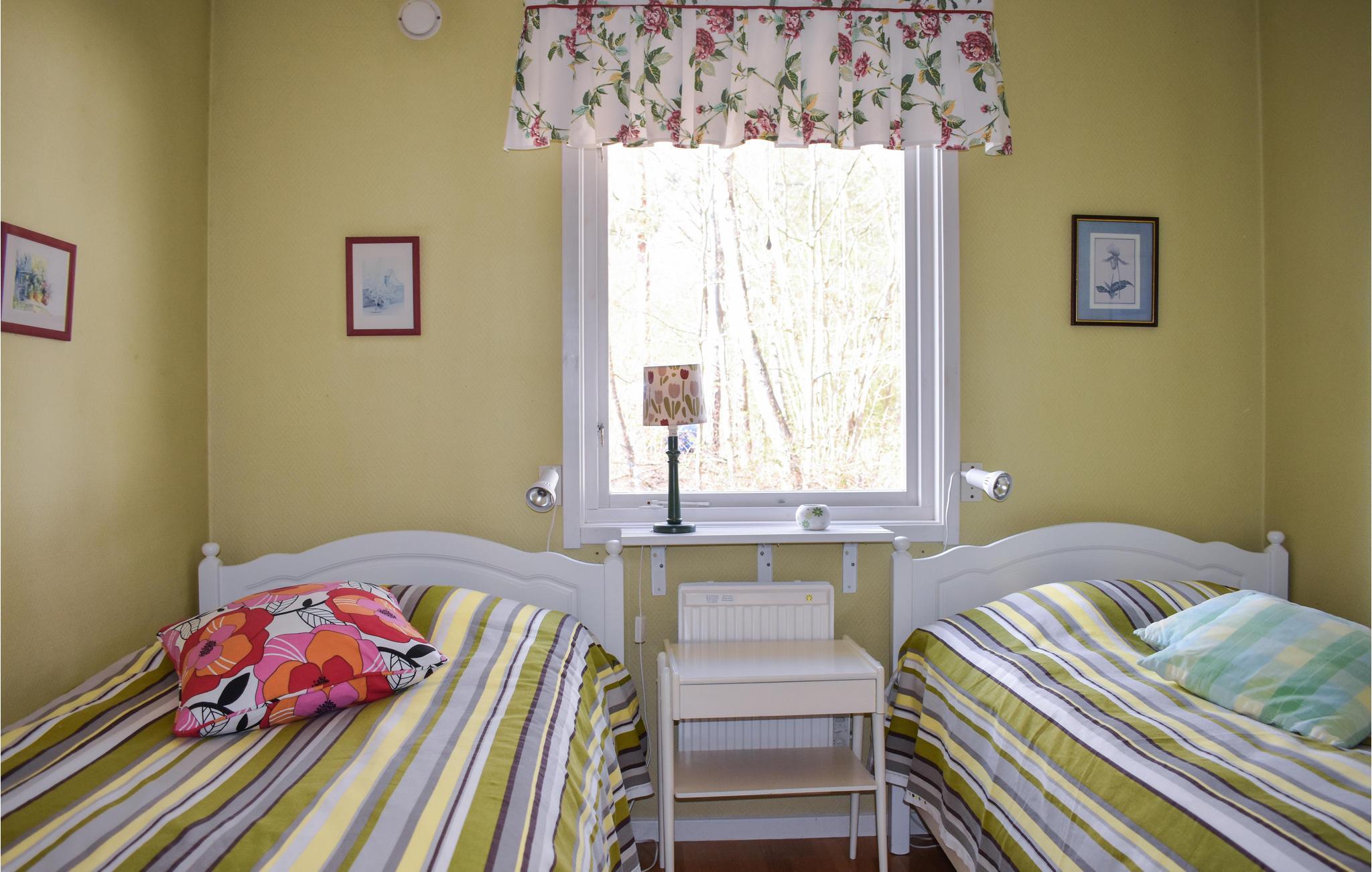 Hele familien vil føle sig hjemme i denne gule træhytte på øen Ivö. Hytten er rigtig hyggelig og får sin charme fra de varme farver, de blomstrede detaljer, den indbydende indretning og masser af lys. Det store spisebord er perfekt til en sjov aften med Monopol. Dette inkluderer selvfølgelig også den lækre jordbærkage, som I har lavet sammen med børnene. Efter at være gået i seng og boltret sig i haven kan mor og far nyde en romantisk aften i udestuen.