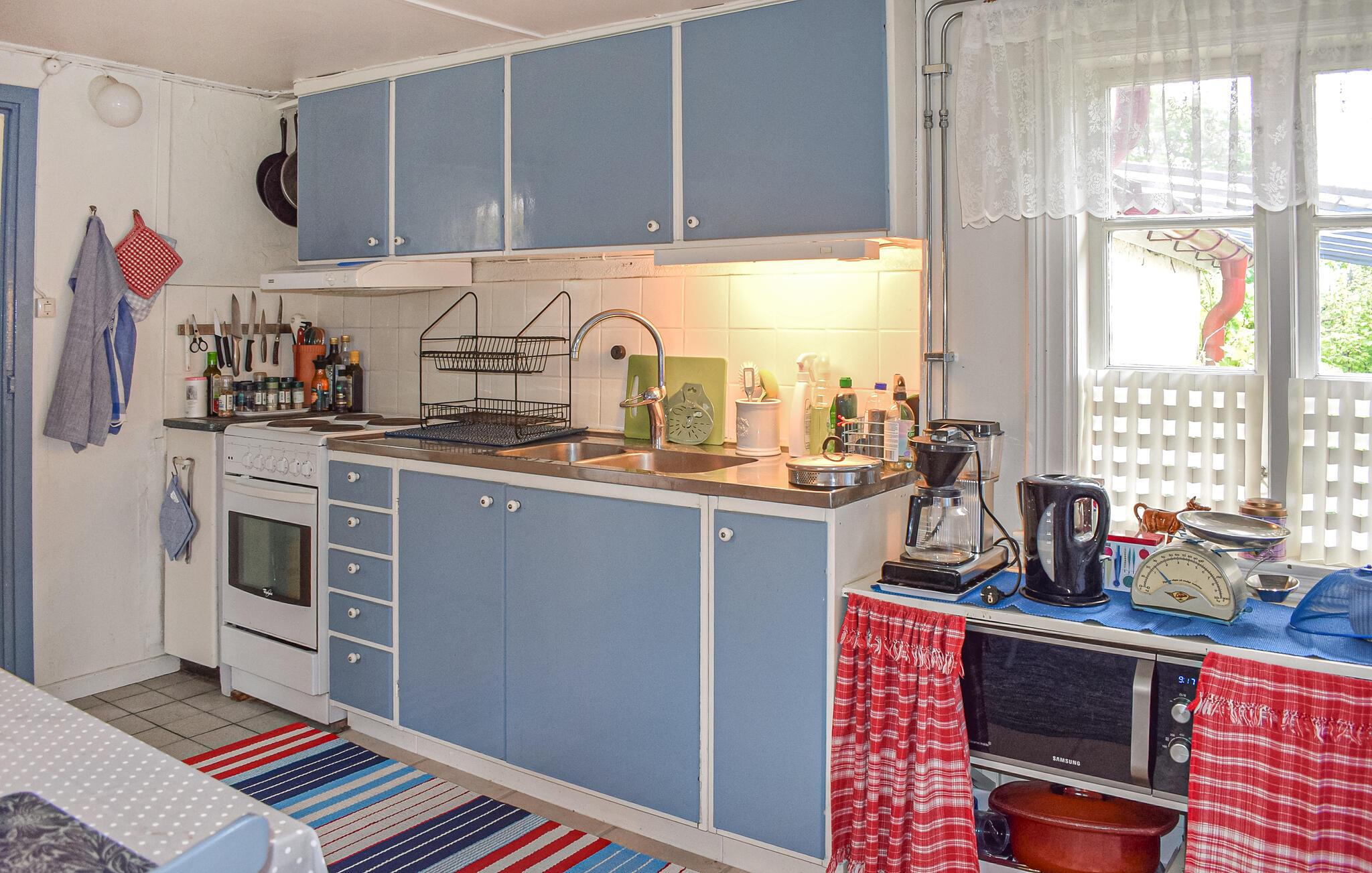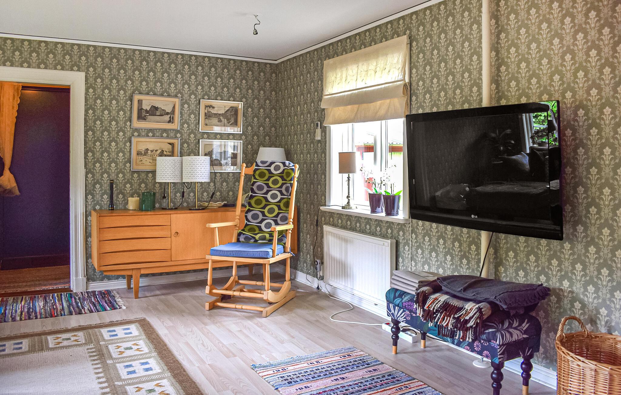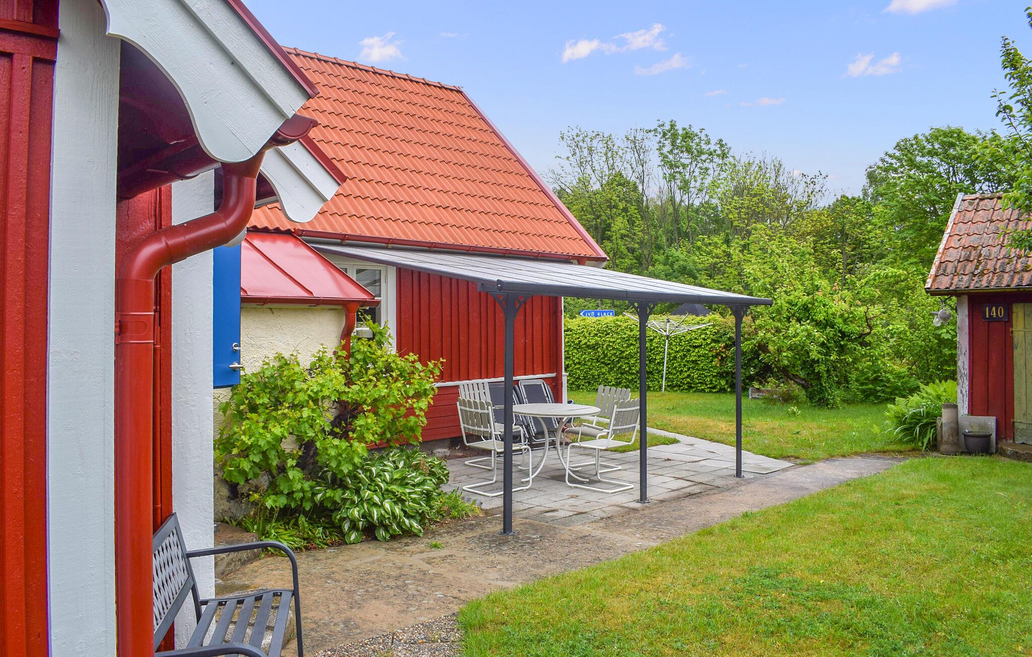Oplev en idyllisk ferie i dette fortryllende feriehus med have. Dette kærligt møblerede feriehus byder jer velkommen med et lyst og rummeligt interiør og en charmerende kombination af nostalgisk stil og moderne detaljer – det ideelle sted at undslippe hverdagens stress og jag. Her kan I trylle lækre retter frem lavet med friske svampe, slappe af i gyngestolen eller nyde den hyggelige atmosfære under harmoniske spilleaftener eller stille læsestunder. På solrige dage er jeres overdækkede terrasse et hyggeligt sted at nyde morgenmaden med udsigt over den velholdte have. Tænd op i grillen og reflekter over jeres oplevelser under åben himmel med et glas Ivögården-vin. Udforsk øens mange naturskønne vandrestier, saml svampe eller find fossiler. Prøv lykken med fiskeri i den store indsø Ivösjön, eller kombiner en gåtur gennem Naturum-museet nær Kristianstad med en slentretur gennem byen. Besøg Blekinge skærgård og Bäckaskog Slot, eller tilbring en dag med at svømme ved Åhus strand.