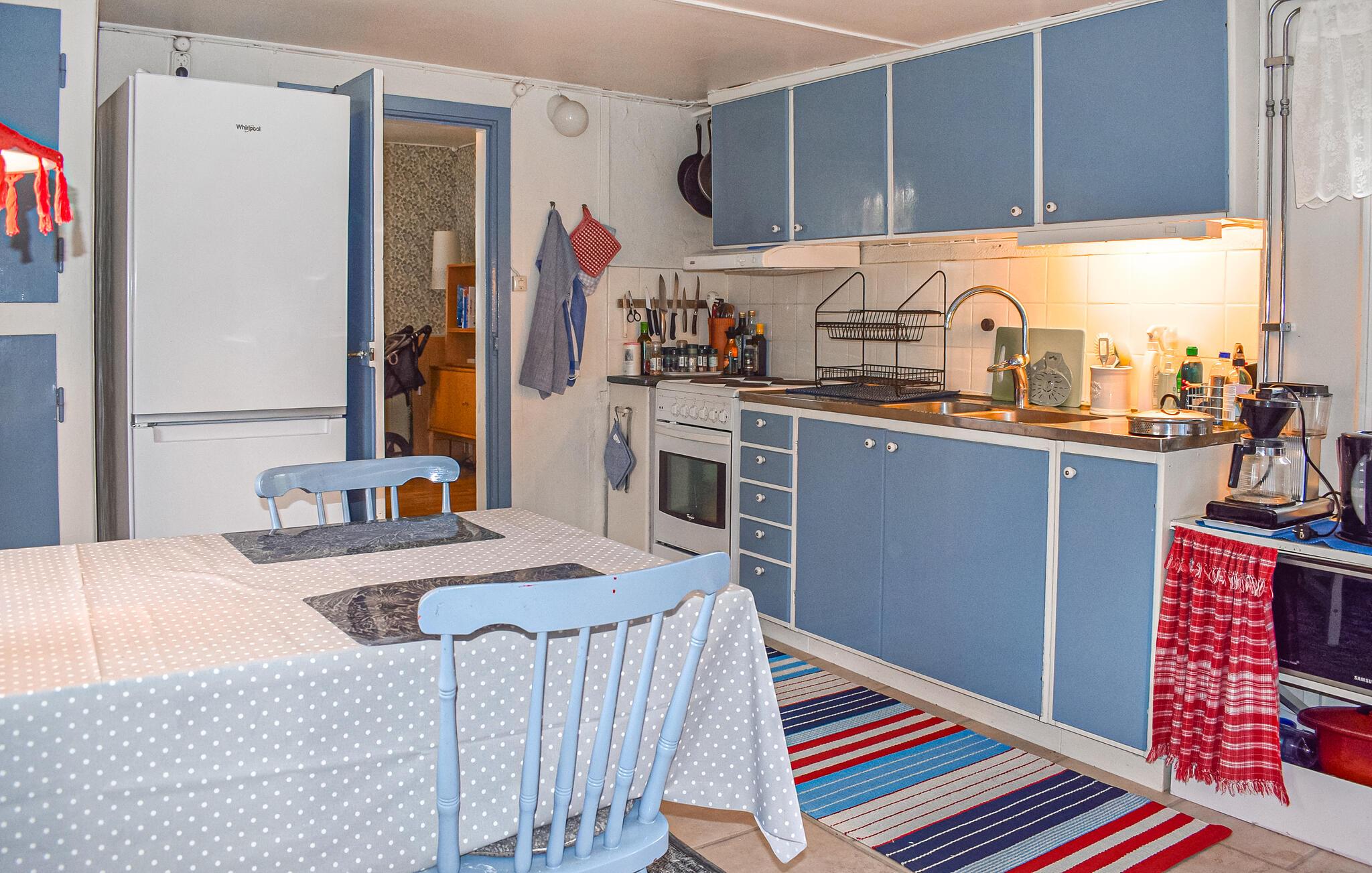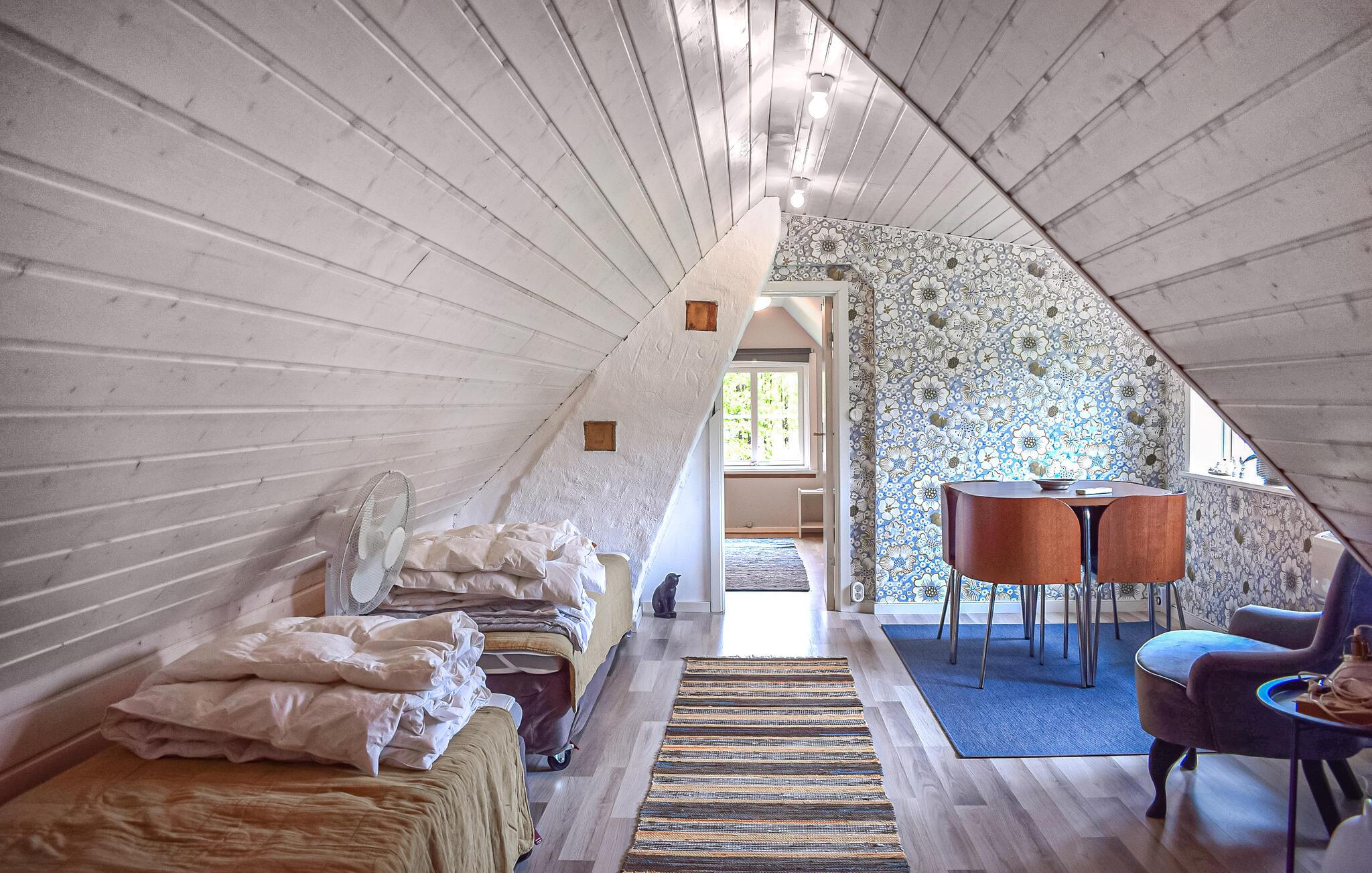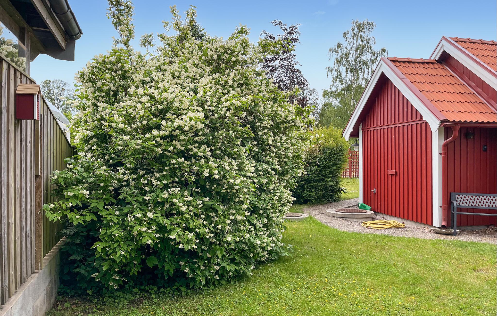 Oplev en idyllisk ferie i dette fortryllende feriehus med have. Dette kærligt møblerede feriehus byder jer velkommen med et lyst og rummeligt interiør og en charmerende kombination af nostalgisk stil og moderne detaljer – det ideelle sted at undslippe hverdagens stress og jag. Her kan I trylle lækre retter frem lavet med friske svampe, slappe af i gyngestolen eller nyde den hyggelige atmosfære under harmoniske spilleaftener eller stille læsestunder. På solrige dage er jeres overdækkede terrasse et hyggeligt sted at nyde morgenmaden med udsigt over den velholdte have. Tænd op i grillen og reflekter over jeres oplevelser under åben himmel med et glas Ivögården-vin. Udforsk øens mange naturskønne vandrestier, saml svampe eller find fossiler. Prøv lykken med fiskeri i den store indsø Ivösjön, eller kombiner en gåtur gennem Naturum-museet nær Kristianstad med en slentretur gennem byen. Besøg Blekinge skærgård og Bäckaskog Slot, eller tilbring en dag med at svømme ved Åhus strand.