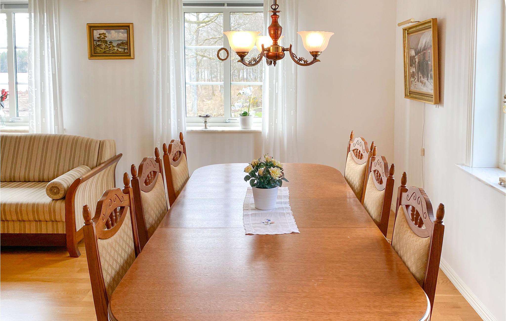 Denne rummelige træhytte med egen robåd og lille badeområde lægger op til aktive dage. Hytten er det perfekte valg for alle naturmennesker, især lystfiskere. Brug denne bolig som et optimalt udgangspunkt for skønne fisketure og vandreture. Inde i huset finder I hyggelige træmøbler og i stuen ved spisebordet kan I forvente hyggelige familiemåltider, planlægningsture og spilleaftener med friske dukkerter og snacks. Eller foretrækker I måske hjemmelavede pandekager? Glem ikke marmeladen! Efter fisketuren kan I forfriske jer i søen om eftermiddagen. Saml svampe og studer det rige dyreliv.