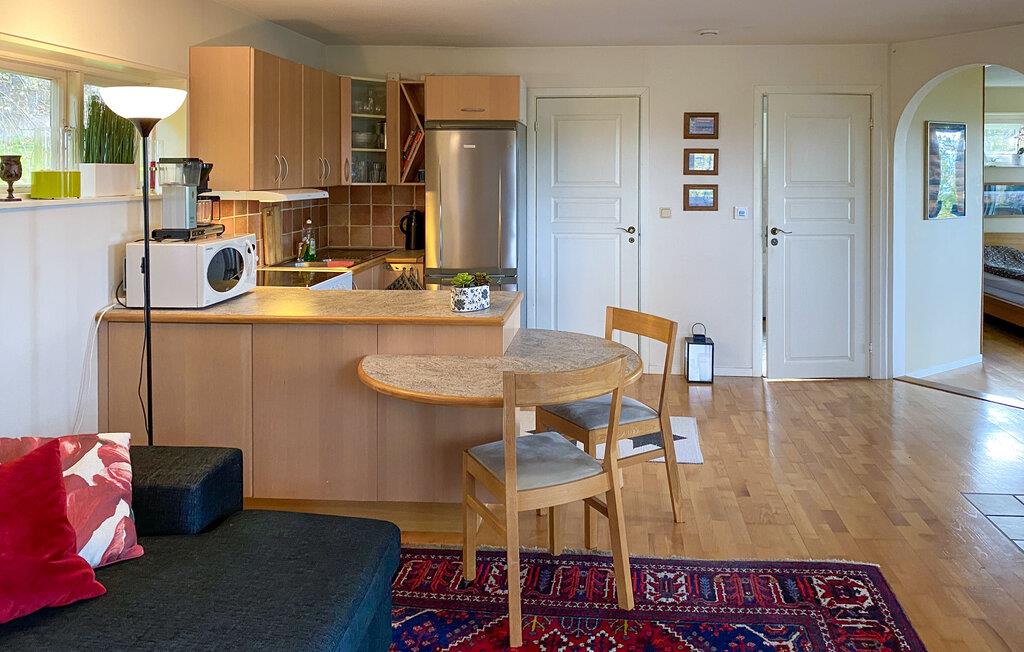 Indenfor venter der jer en hyggelig atmosfære med en komfortabel sofagruppe, ideel til afslappende aftener med hele familien. Den åbne udformning af opholds- og køkkenområdet lægger op til hyggelige madlavningsaftener og stimulerende samtaler. Nyd dette kærligt indrettede indre og slap fuldstændigt af.